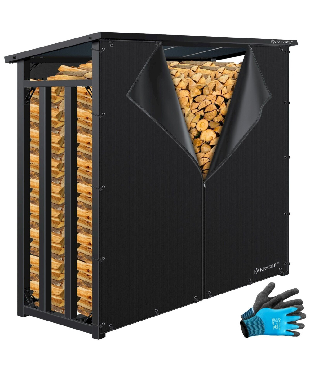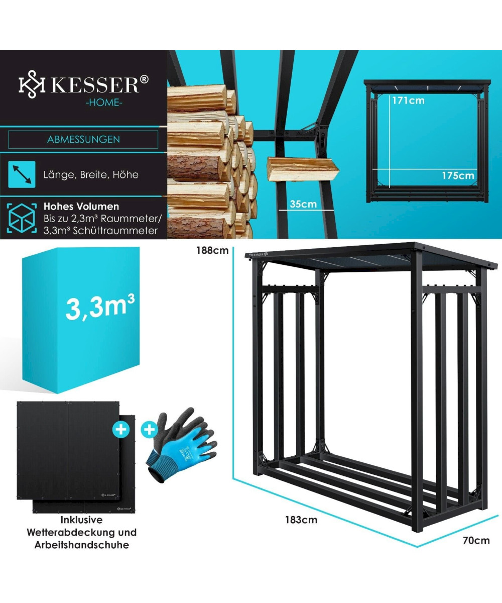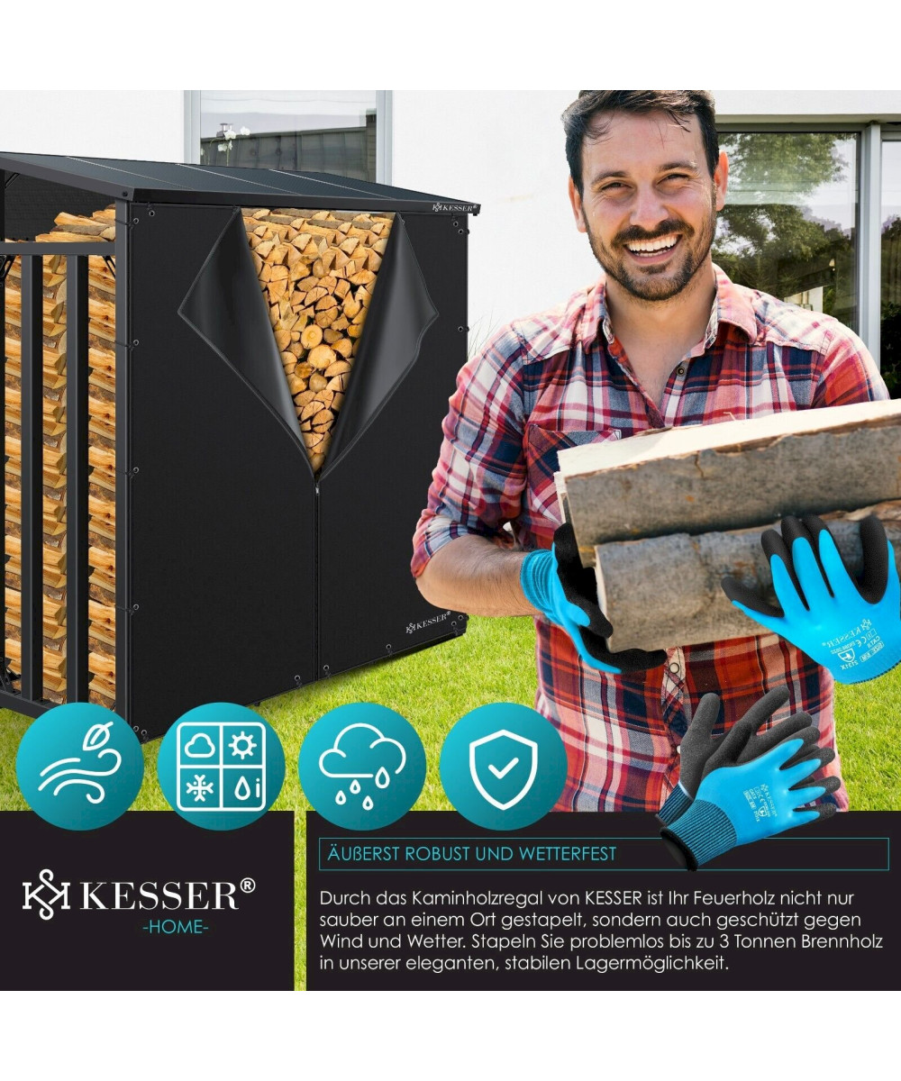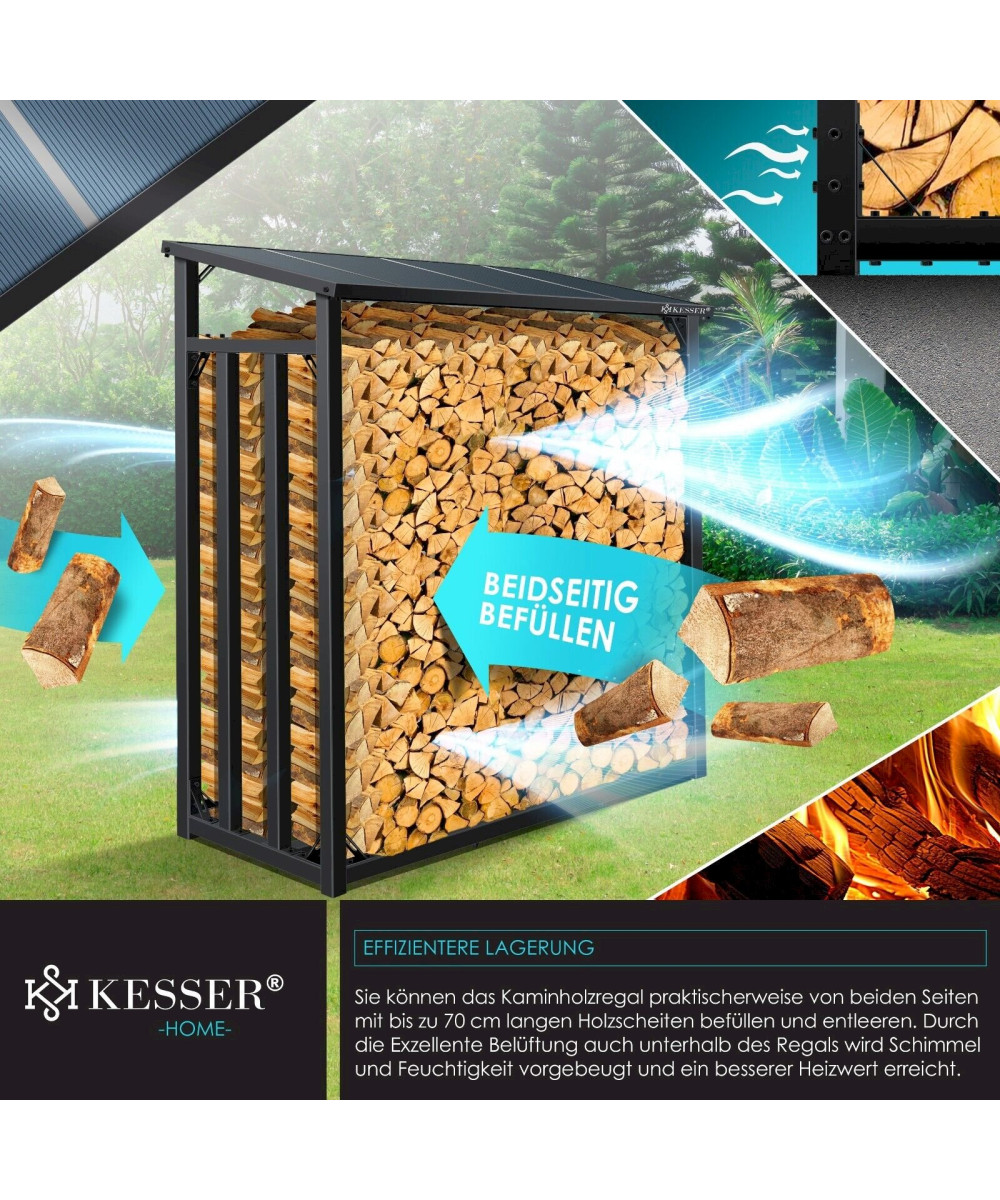 KESSER Kaminholzregal Metall Brennholzregal 188x70x185cm Kamin Holz Regal Lager Schwarz