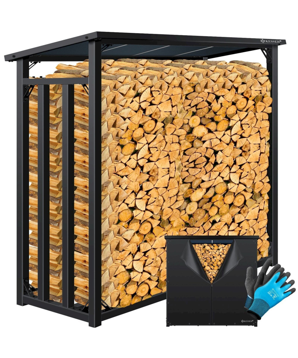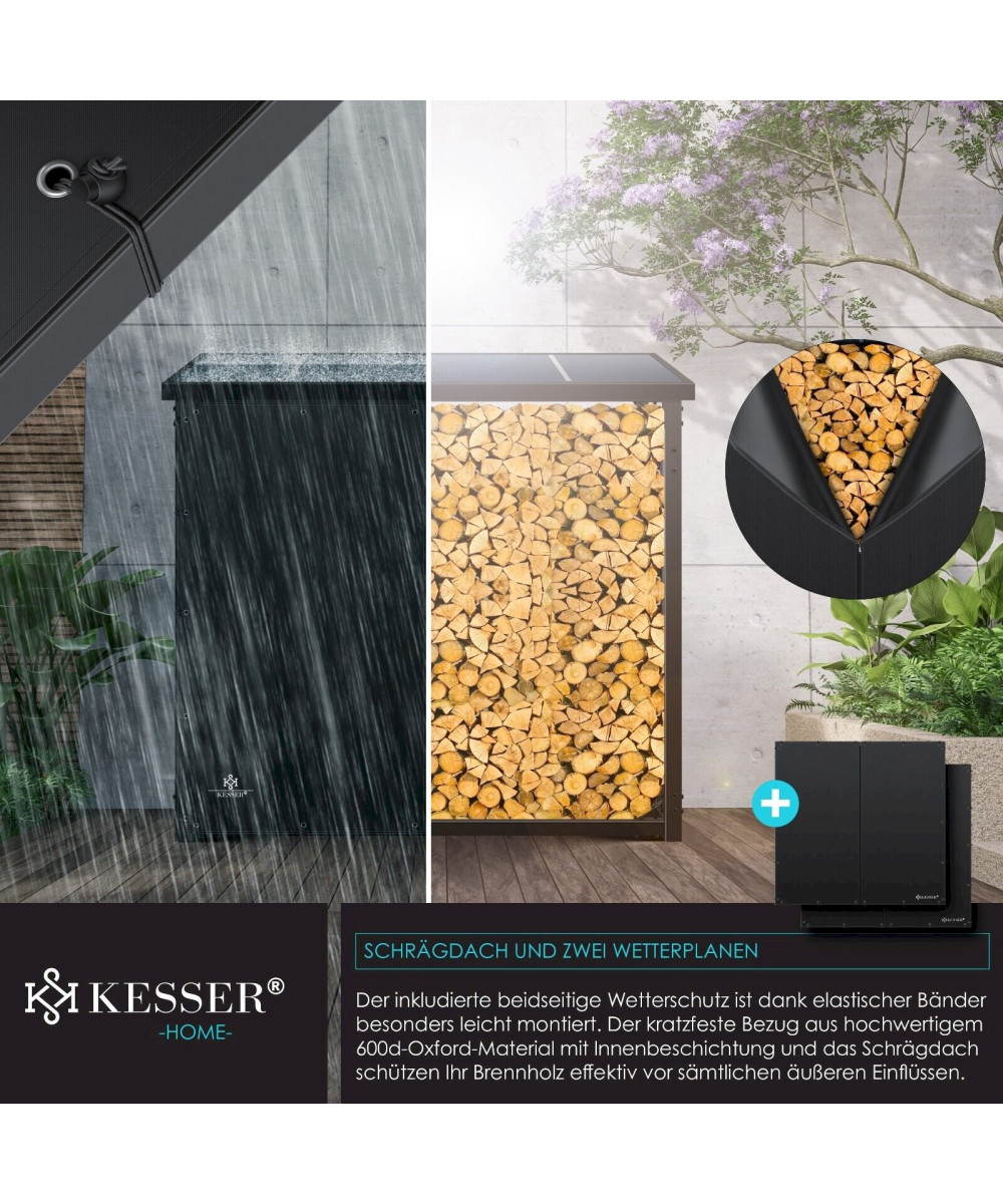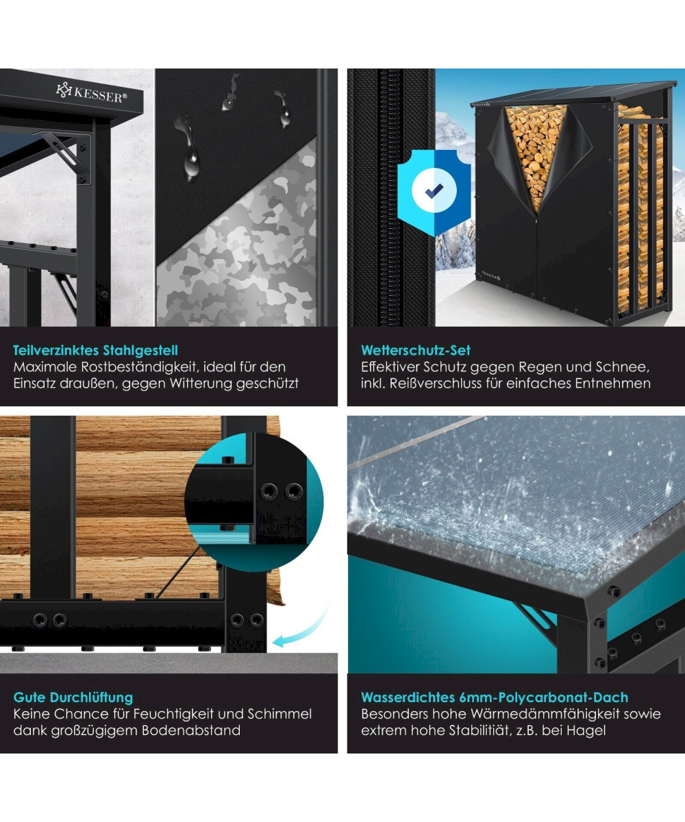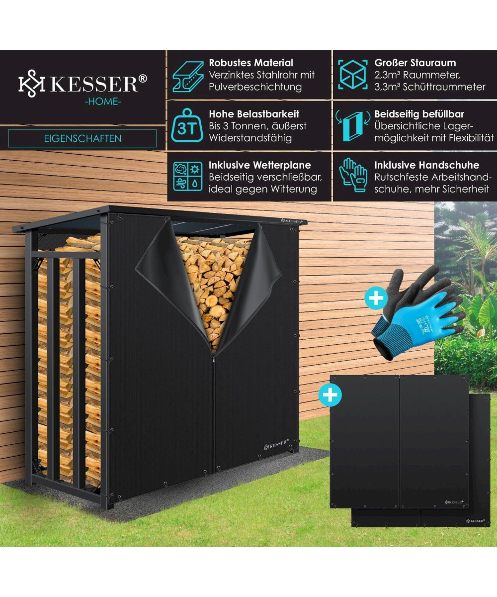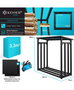 KESSER Kaminholzregal Metall Brennholzregal 188x70x185cm Kamin Holz Regal Lager Schwarz
