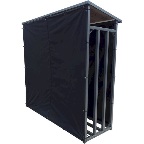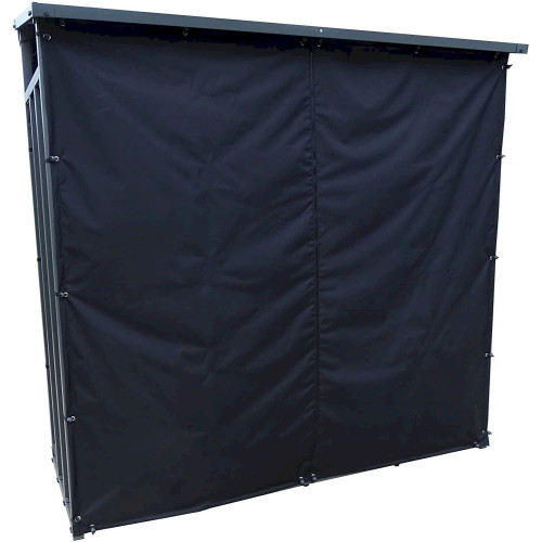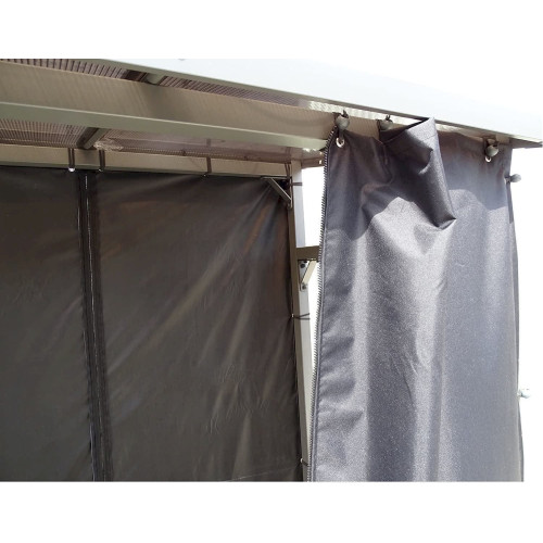 Le toit est fait de feuilles de polycarbonate avec des profils en aluminium. Les panneaux latéraux et l'ensemble du sous-châssis sont en acier revêtu de poudre pour une grande stabilité. Le rideau correspondant de protection contre les intempéries est inclus.