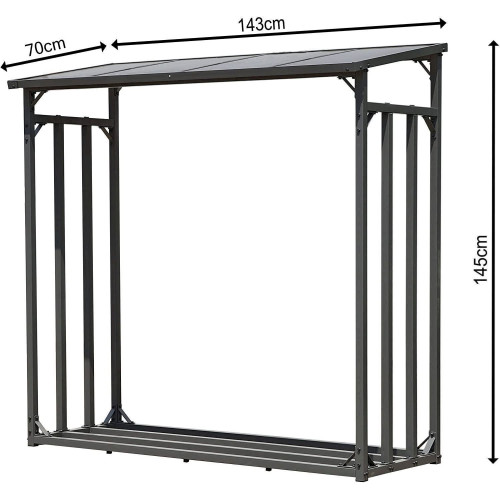 Support de bois de chauffage 143x70x145cm avec protection contre les intempéries