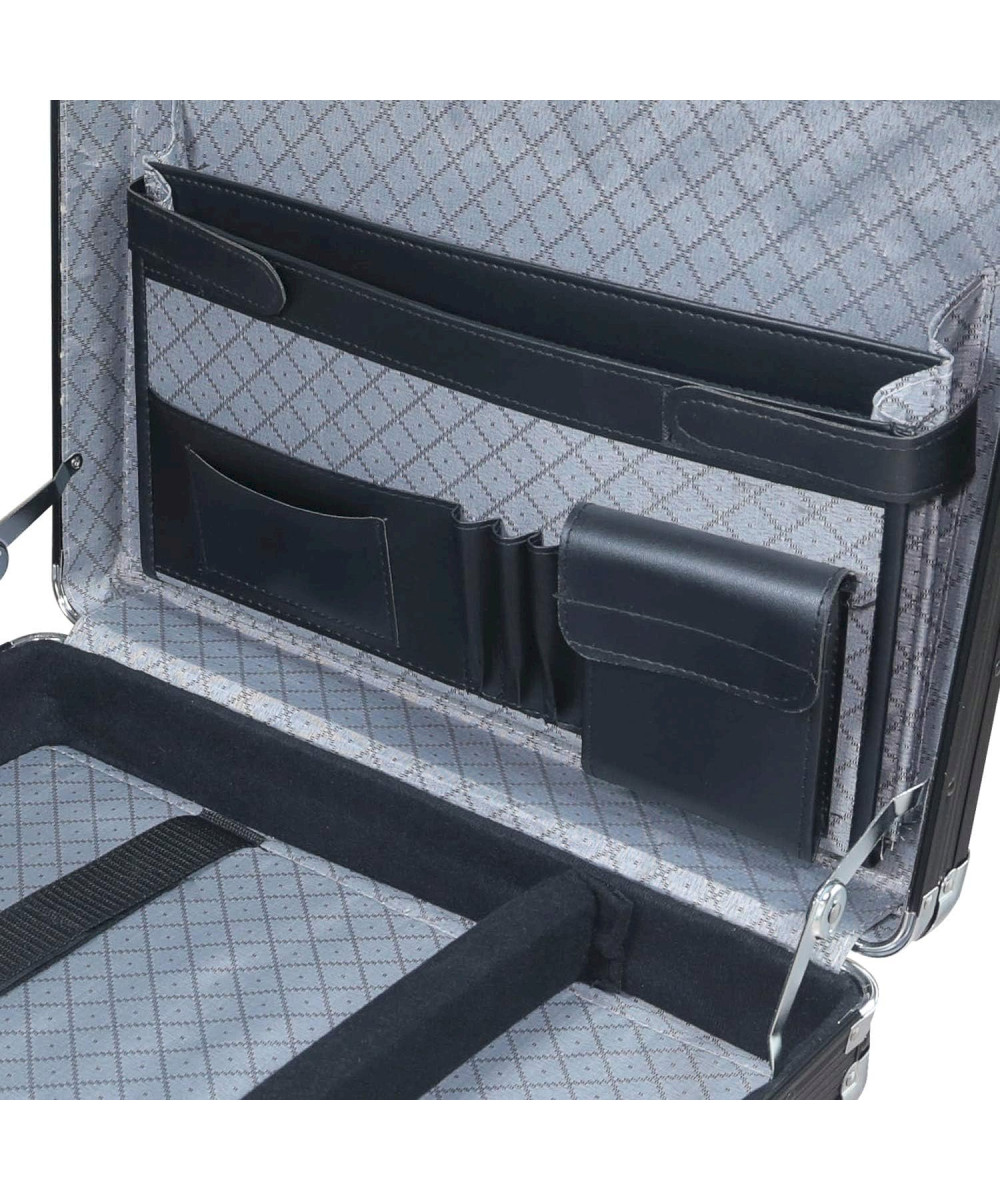 - Compartiments extensibles en similicuir dans le couvercle, pour un espace plus important pour les documents