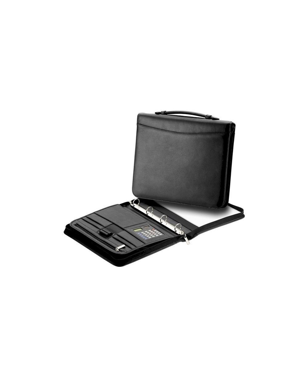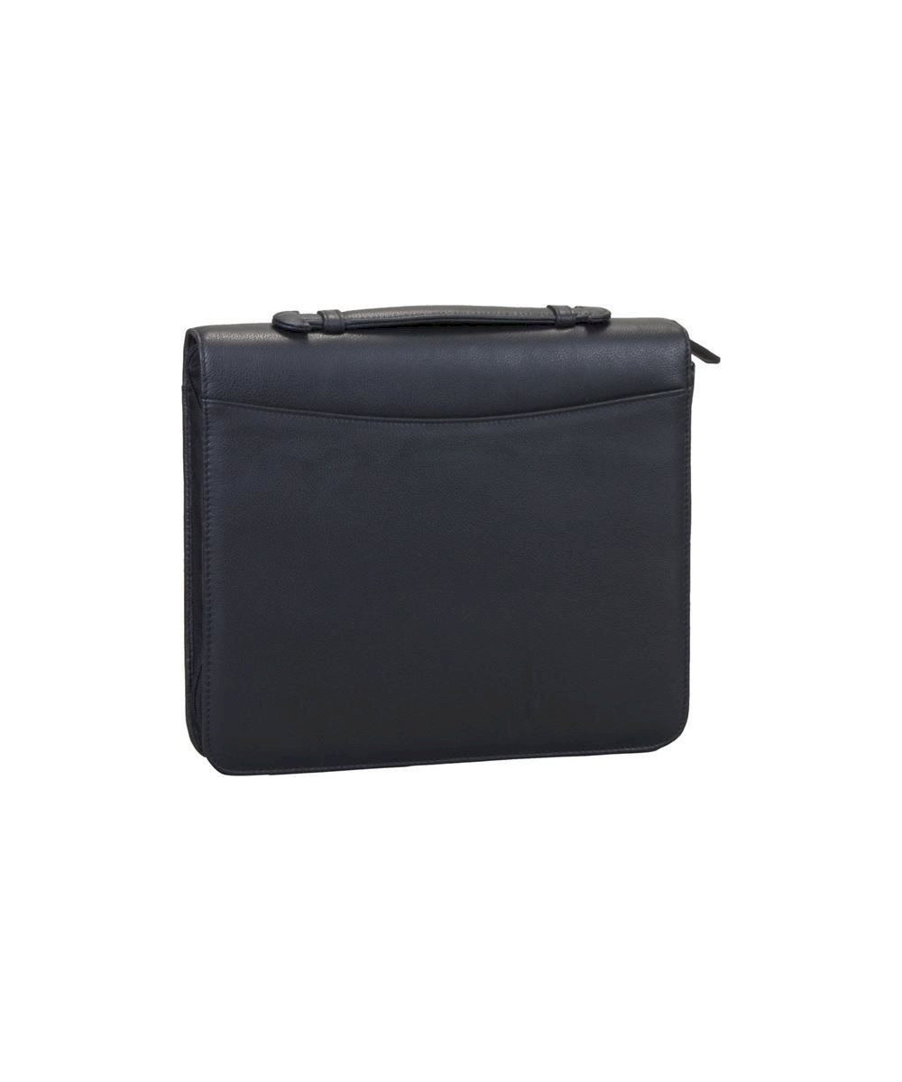 Die Schreibmappe aus edlem Vollrindleder besteht aus einem eingebauten Taschenrechner, so wie 4 Kartenfächer und ein Reißverschlussfach. Das versteckte Fach bietet zusätzlich noch Platz für Unterlagen und Zeitschriften.