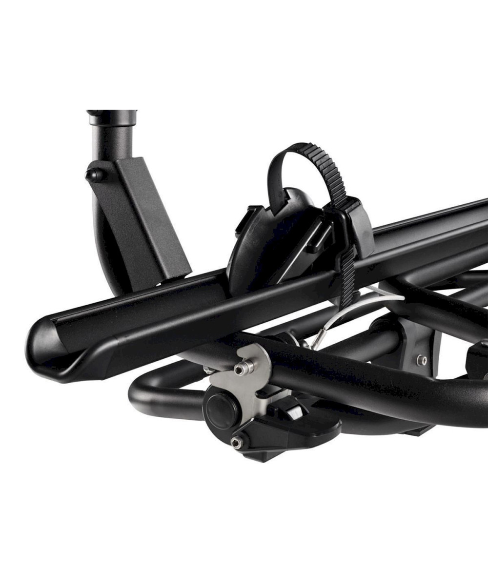 Die Fahrradrahmenhalter mit weicher Oberfläche können Sie zur Ausrichtung auf dem Fahrradrahmen ganz einfach seitlich verschieben. Außerdem sind sie dank der Thule Schlösser abschließbar.