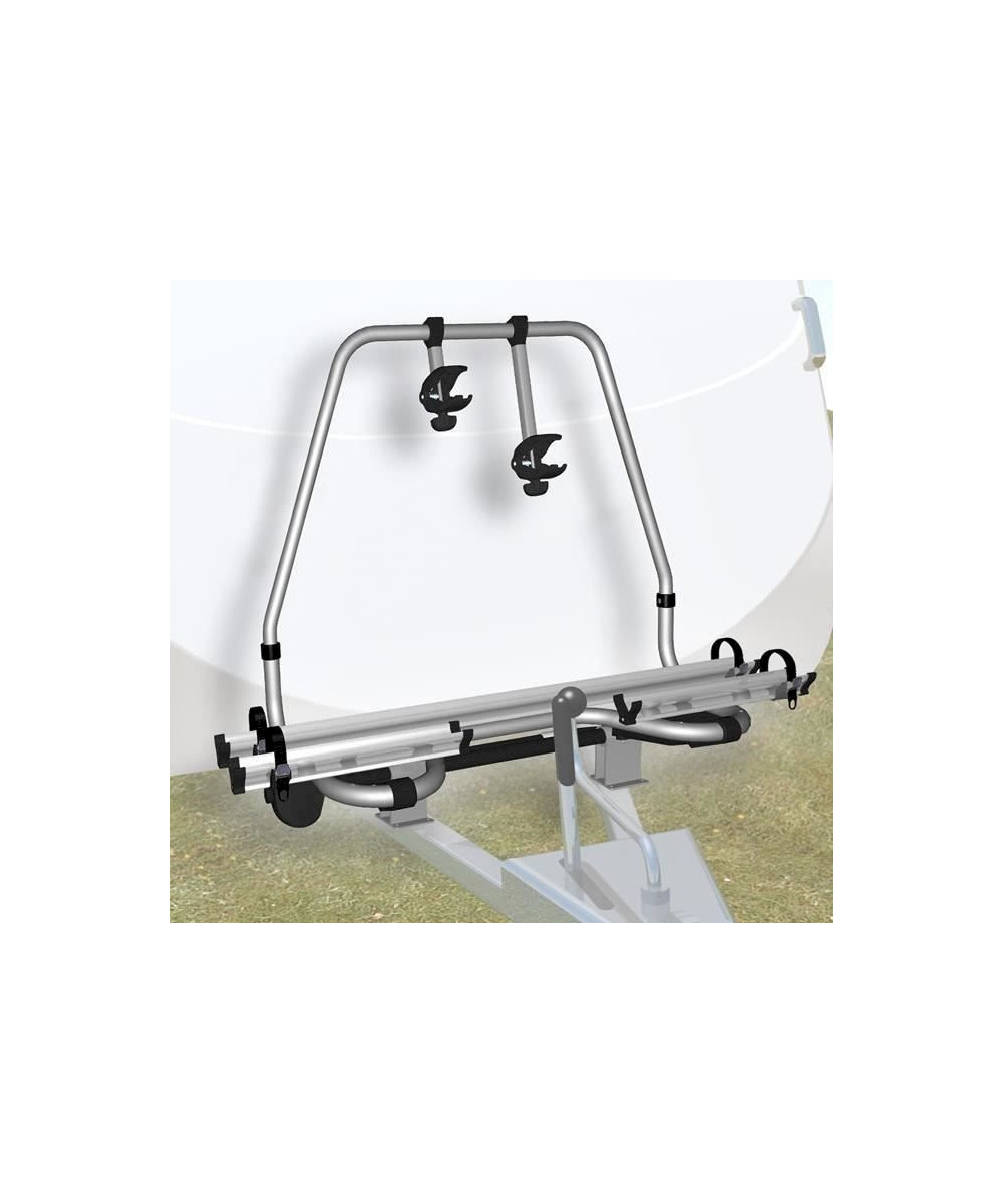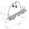 Porte 2 vélos spécifique pour le montage sur timon. Peut rester en position lors de l'ouverture de l'espace de chargement. Possibilité de verrouiller les barres de maintien grâce aux serrures antivol compatibles (option à ajouter). Compatible tous types de timons. Charge max. : 50 kg. Capacité par rail : 30 kg.