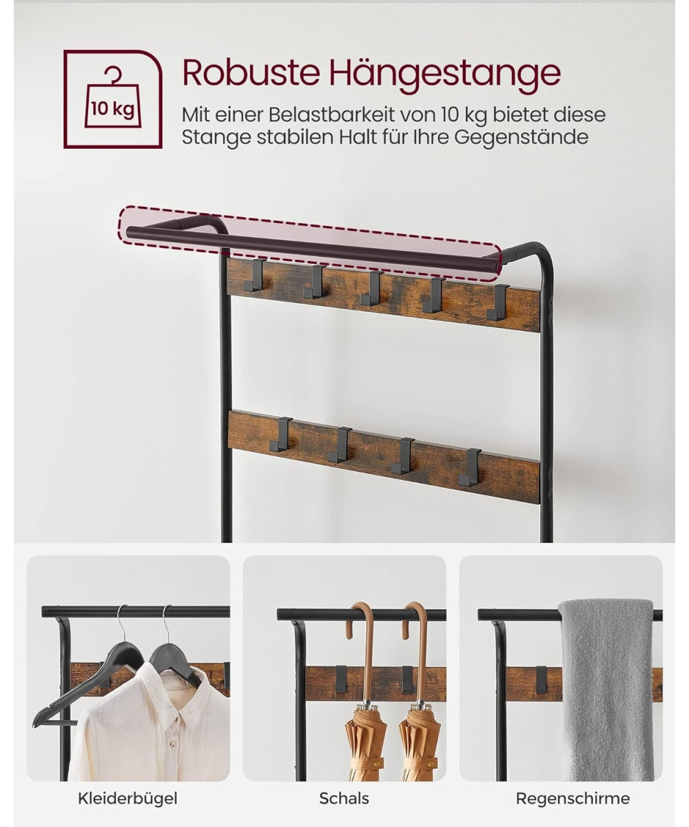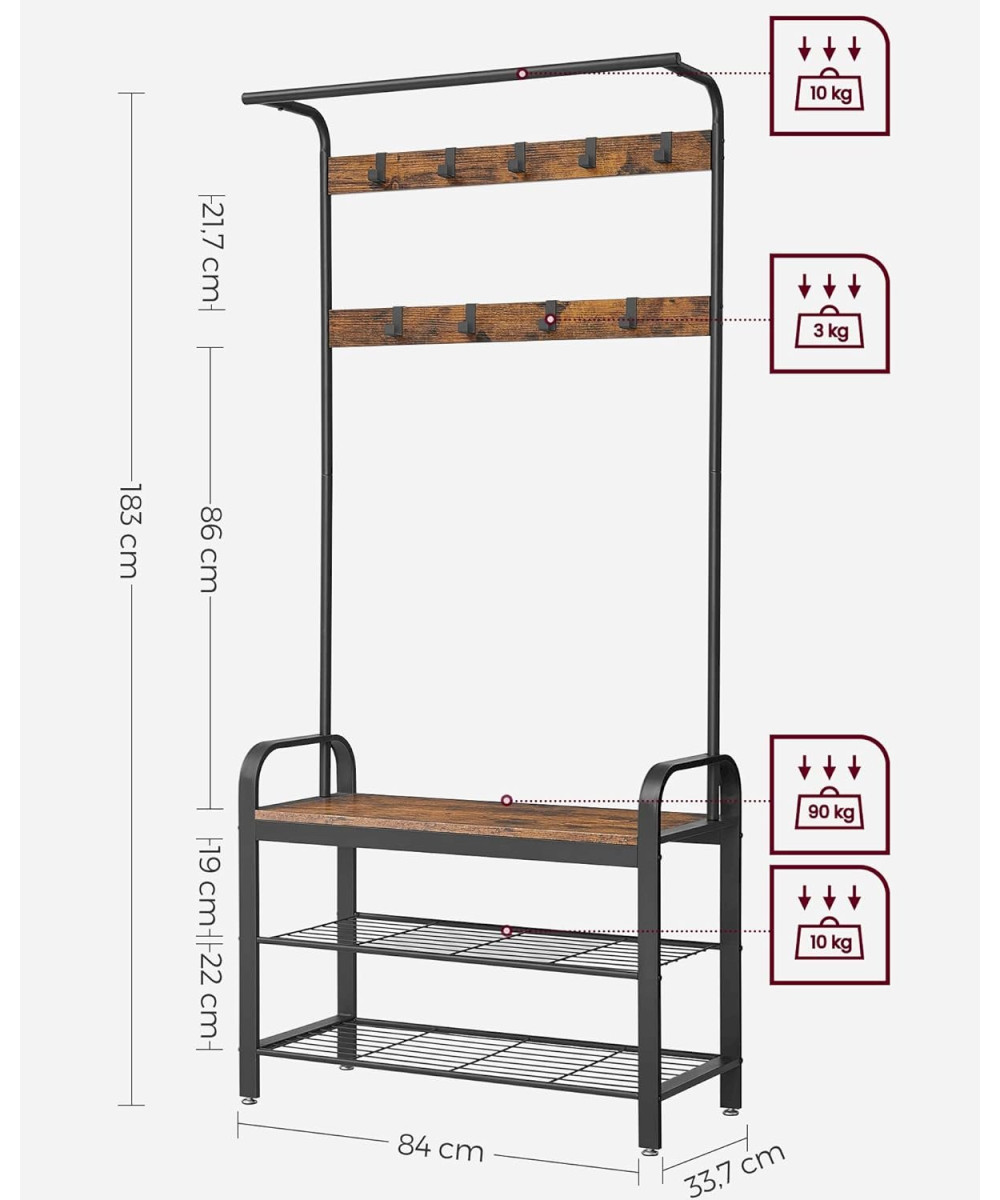 VASAGLE Portemanteau industriel 84x33,7x183cm