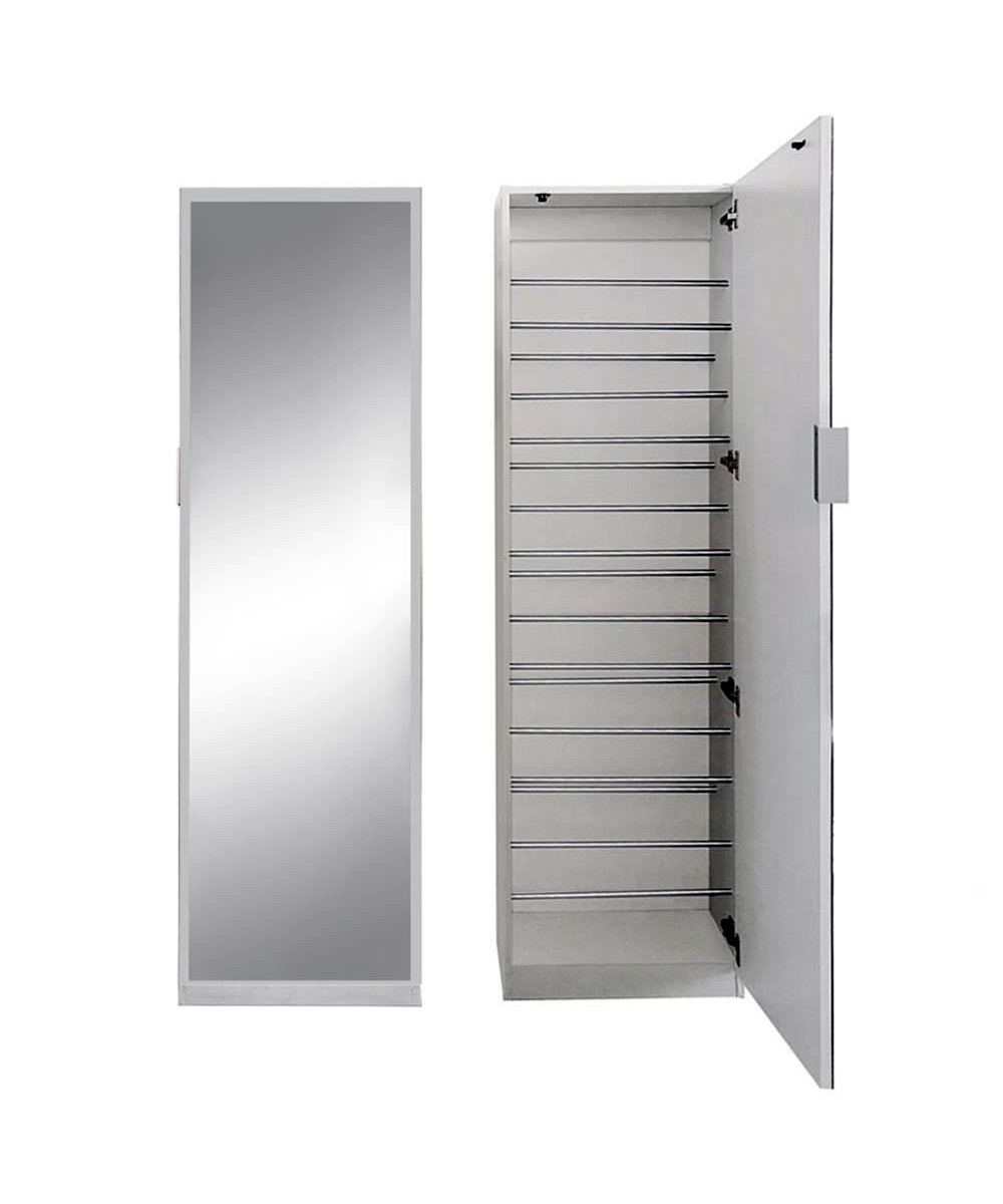 - 1 armoire à chaussures avec partie avant miroir - Couleur : blanc