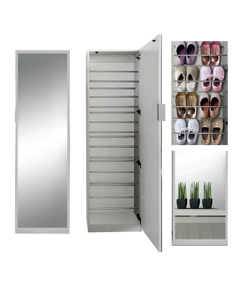 Cette étagère à chaussures de couleur blanche permet de mettre de l'ordre et de l'élégance. L'armoire à chaussures miroir de qualité convainc par son volume. Les six grilles peuvent contenir 12 à 18 paires de chaussures. En outre, vous pouvez profiter d'une grande surface de miroir.