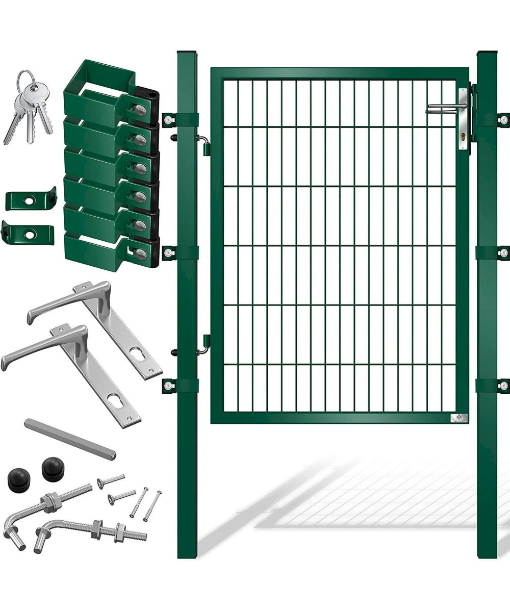 Porte de jardin en acier galvanisé vert 120 x 106 cm, portail avec poteaux avec serrure, poignée de porte et clé