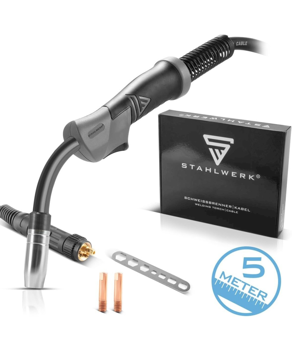 -1 × torche de soudage MIG MAG "AK15/MB15 " 5 mètres (1 × buse à gaz, 1 × électrode de courant déjà prémontée dans la torche).
