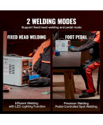 2 modes de soudage : choisissez entre deux modes de soudage – soudage à tête fixe ou mode pédale – pour répondre à vos besoins en matière de construction de batteries. De plus, la panne de soudage est dotée d'une fonction d'éclairage LED, garantissant un soudage précis même dans des environnements faiblement éclairés.