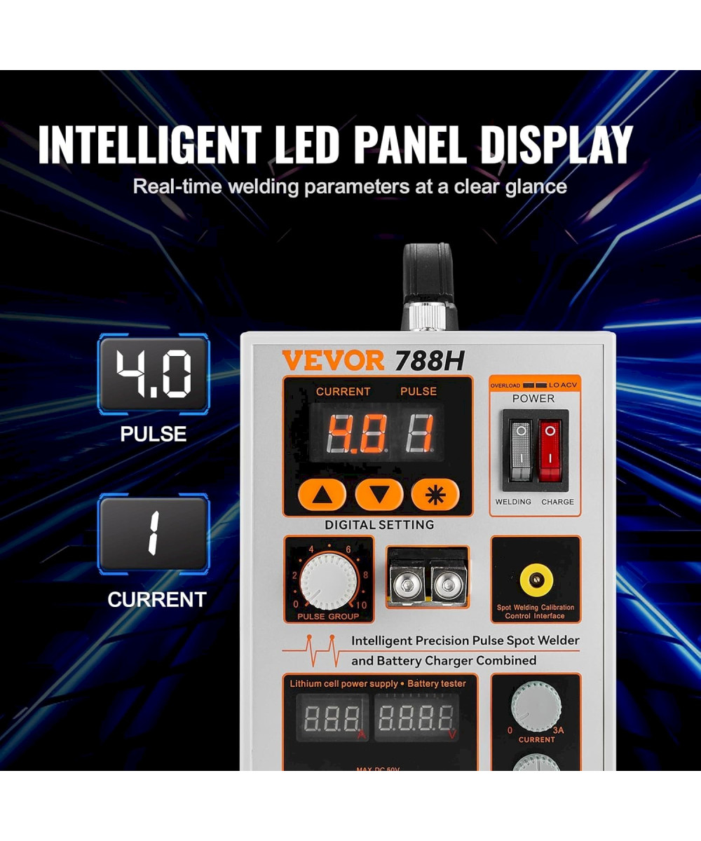Résistance de soudage améliorée : la soudeuse par points à impulsion de batterie VEVOR 788H facilite le soudage précis des bandes de nickel pur de 0,15 mm, parfaite pour la construction de batteries au lithium rechargeables comme 18650 et 14500, ainsi que pour la manipulation de matériaux en nickel pur, nickelés et en fer pour diverses applications industrielles. .