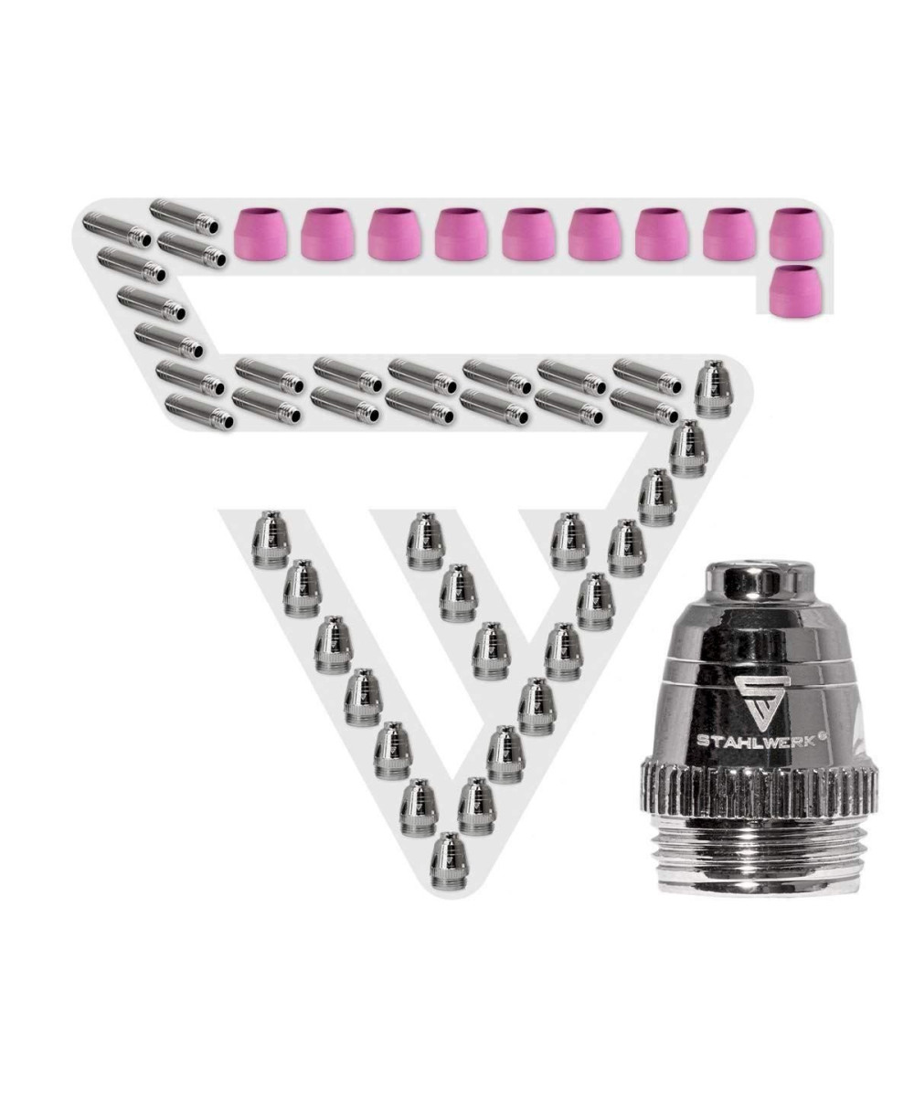 STAHLWERK Accessoires Plasma Pièces d'usure Buses Plasma + Electrodes + Capuchons 50 pièces