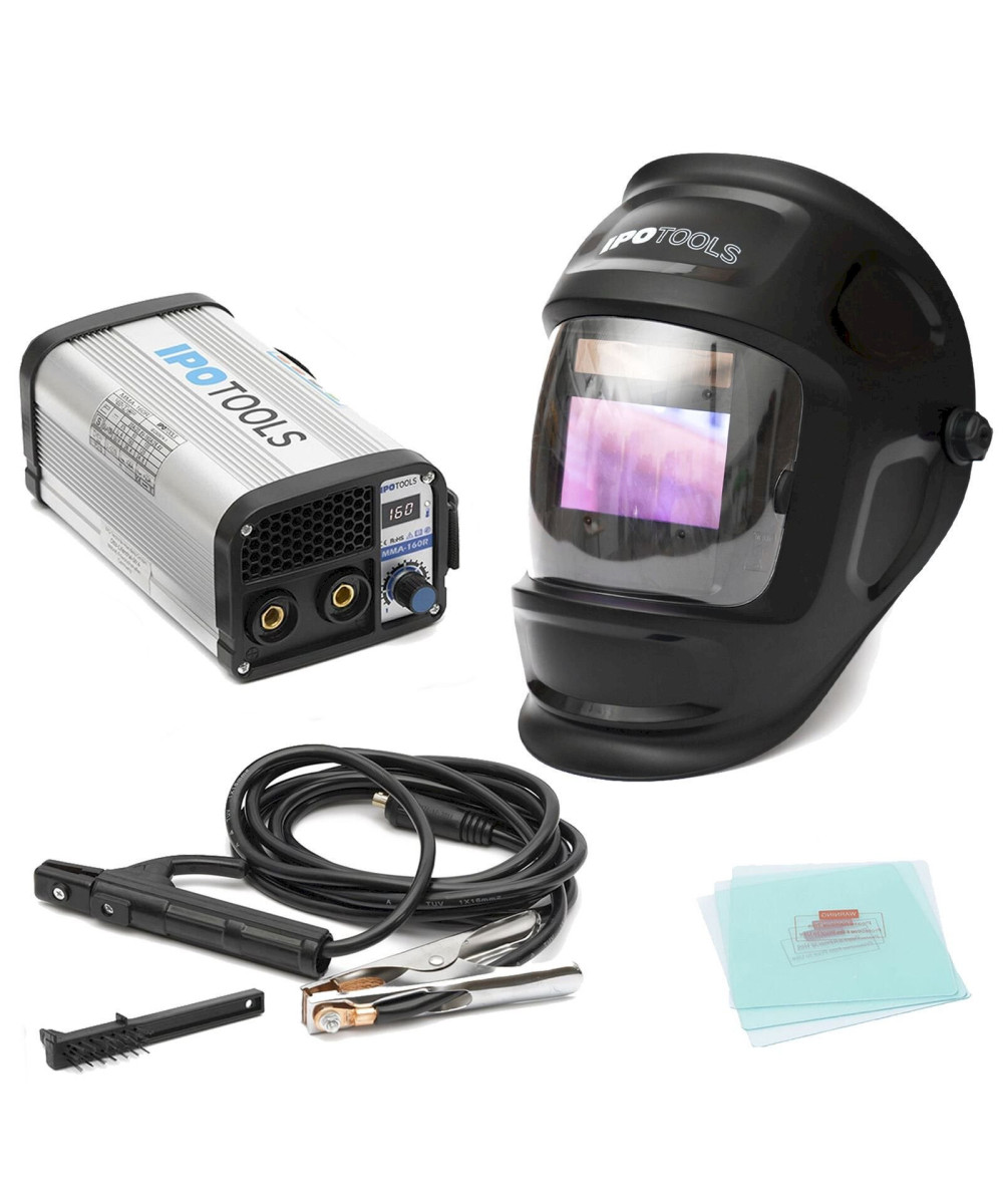 IPOTOOLS Inverter Schweißgerät Elektrodenschweißgerät MMA-160R mit Schweißhelm X800A