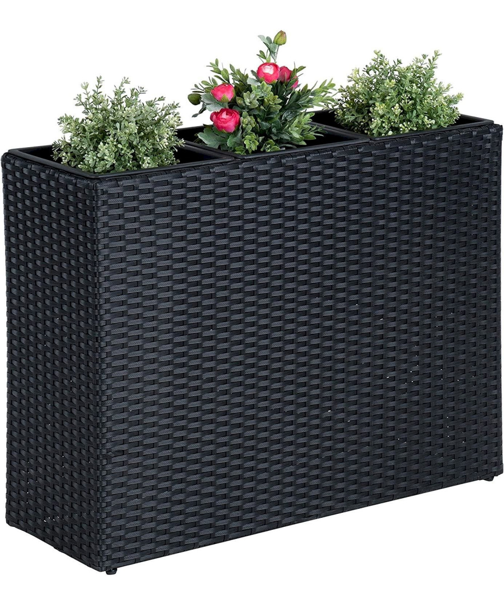 ESTEXO Pot de fleurs en polyrotin pour jardin Noir