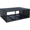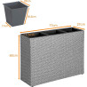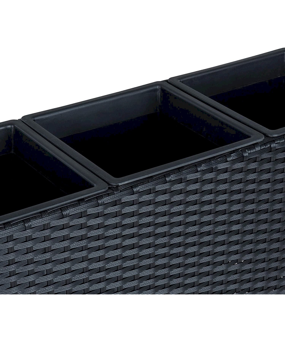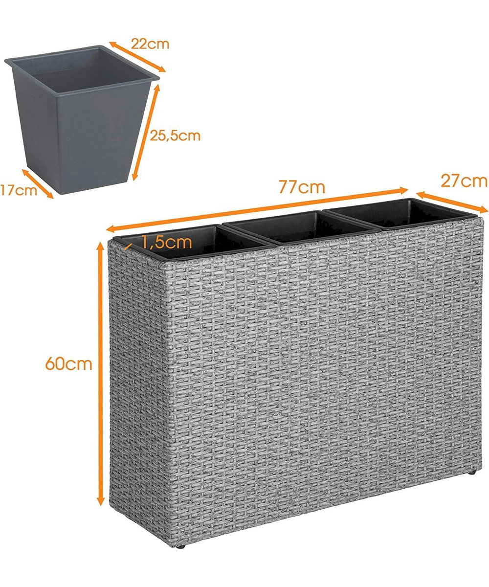 Cette jardinière avec 3 pots intérieurs est idéale pour les plantations dans le jardin, sur le balcon, la terrasse et même dans l'appartement. Il se compose d'une construction métallique solide enveloppée d'un tressage en polyrotin. Le rotin est résistant aux intempéries et aux UV et est facile à nettoyer. Les pots intérieurs se retirent facilement de la structure en polyrotin et offrent beaucoup d'espace pour vos plantes. Chaque pot est muni d'un écoulement d'eau refermable avec joint en caoutchouc pour éviter l'accumulation d'eau. Le pot a des pieds réglables pour compenser les petites irrégularités dans le sol.