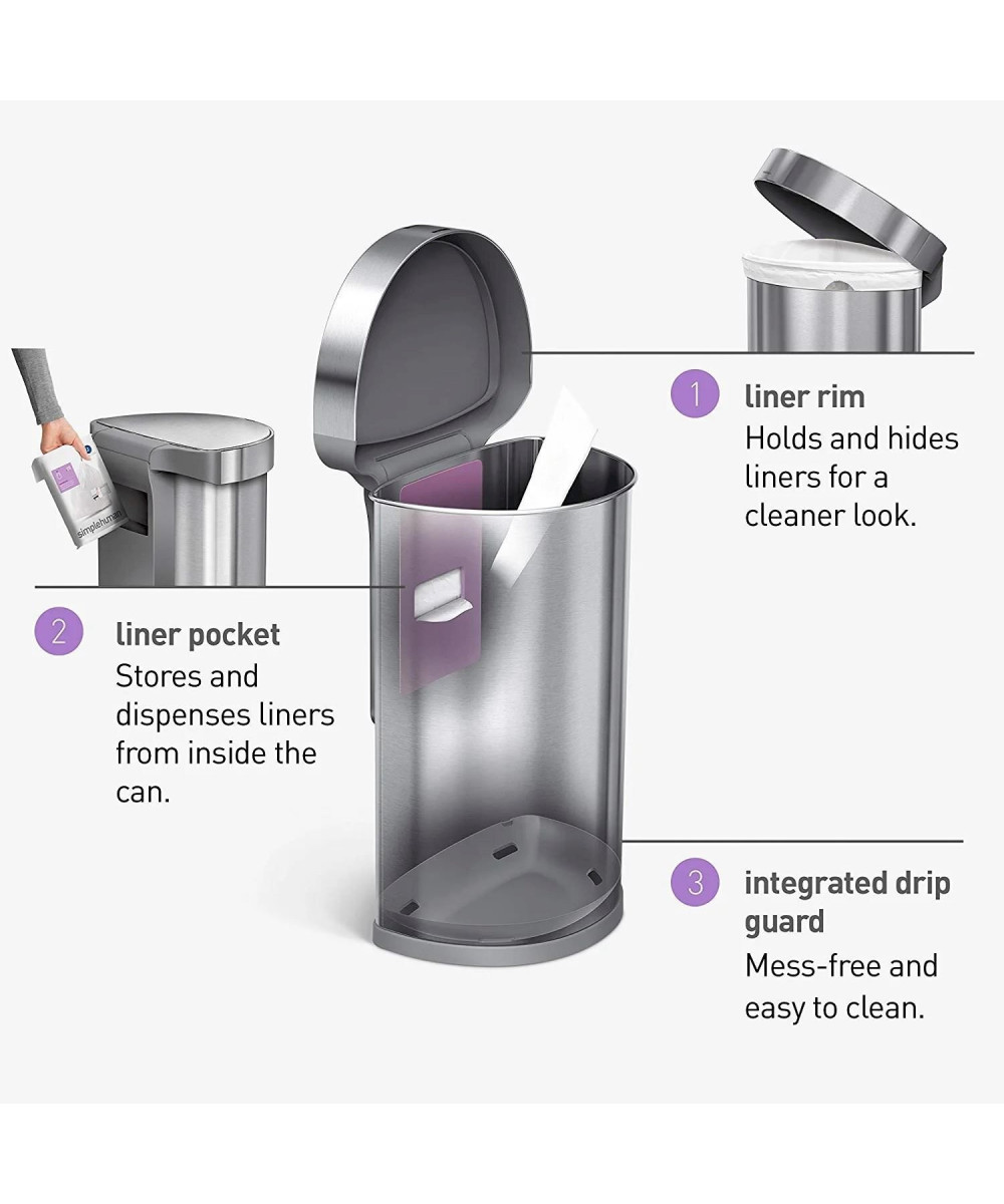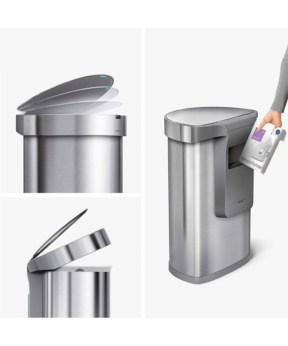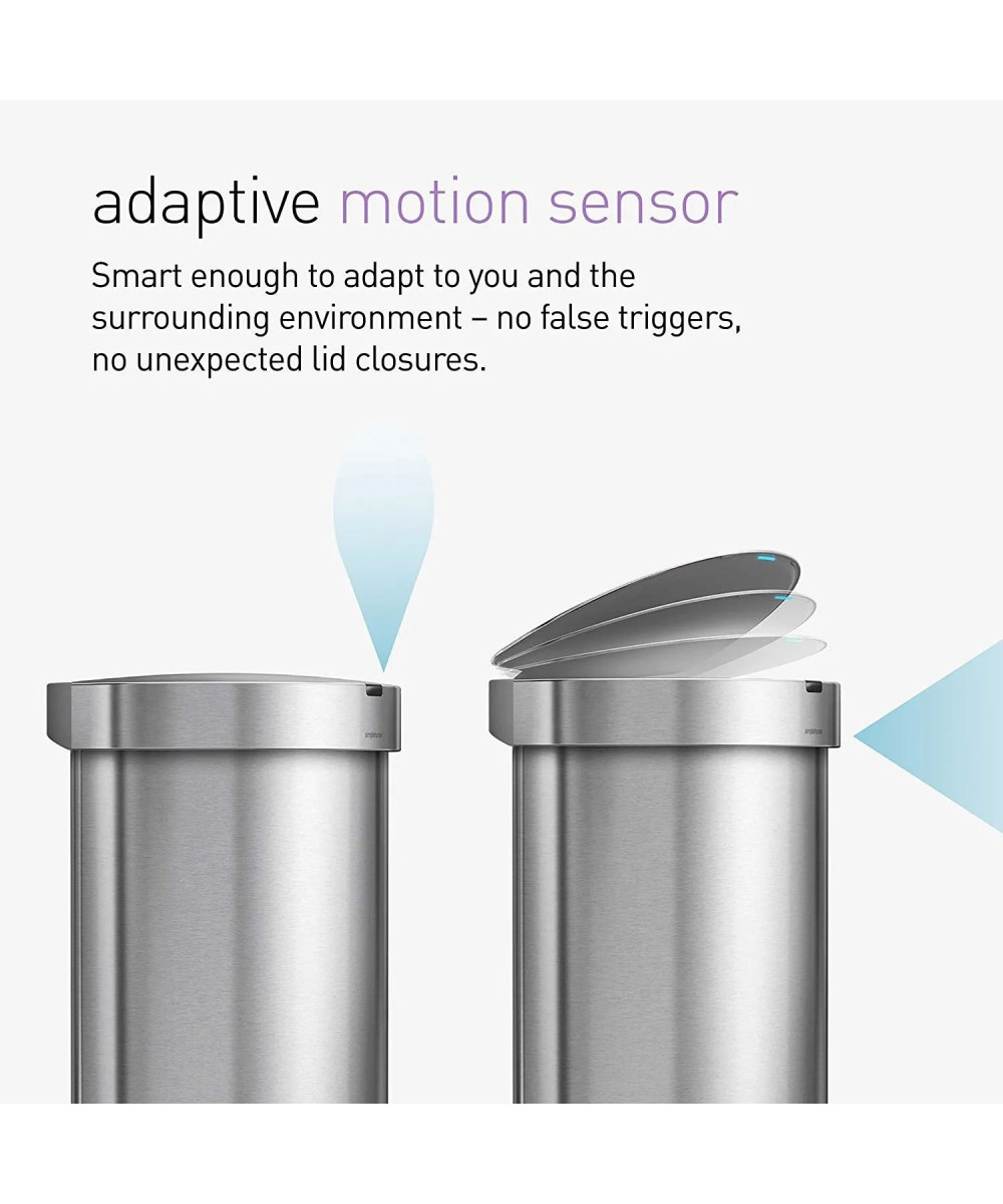 simplehuman ST2009 poubelle demi-lune à capteur 45 litres, acier inoxydable brossé