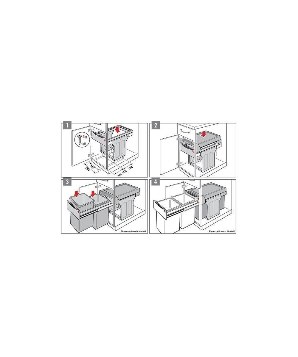 - 2 einzelne Inneneimer mit einem jeweiligen Volumen von 15 Litern