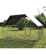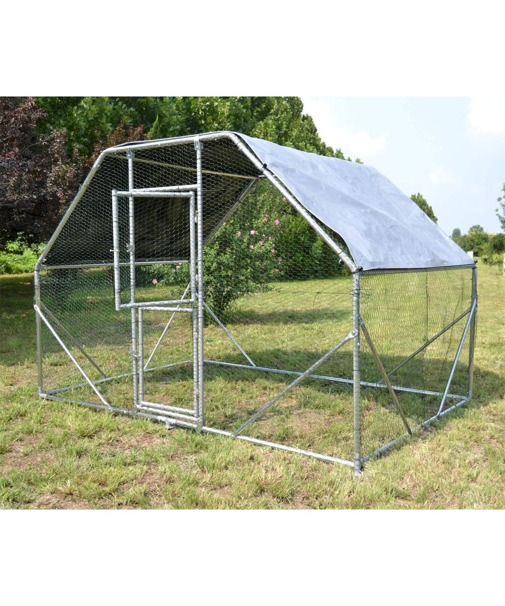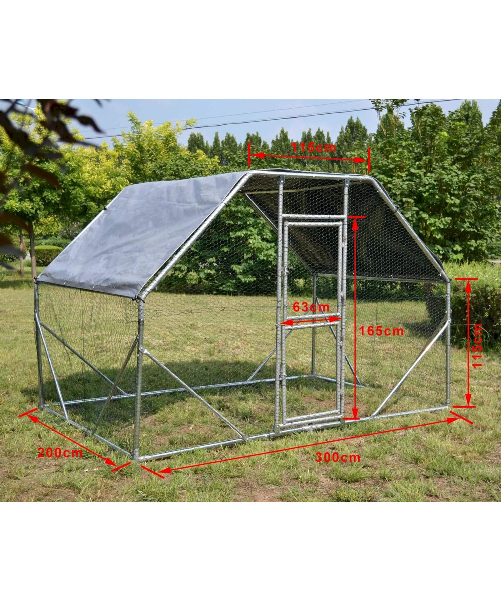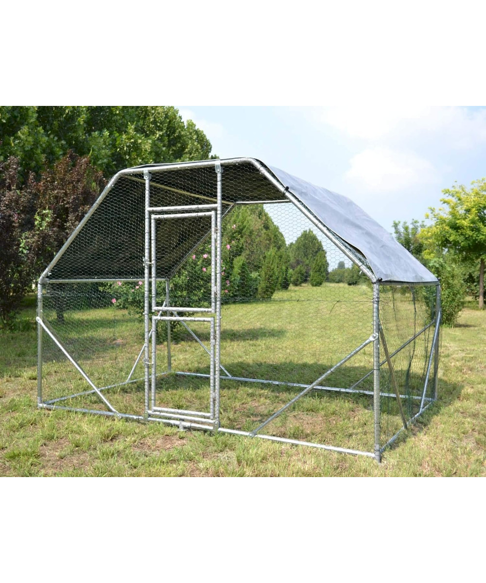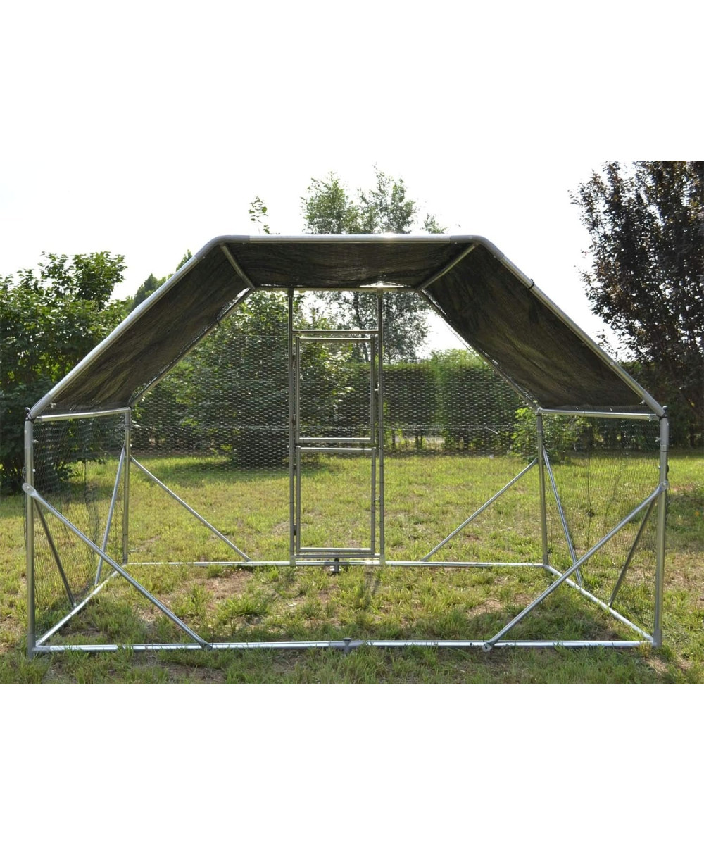 Vu la taille généreuse de la cage, il serait bien trop encombrant de la faire rentrer à l’intérieur. Ainsi, pour protéger vos animaux de la chaleur ou du vent qui risque de les fragiliser, le toit de l’enclos est muni d’une bâche étanche et résistante aux rayons UV.