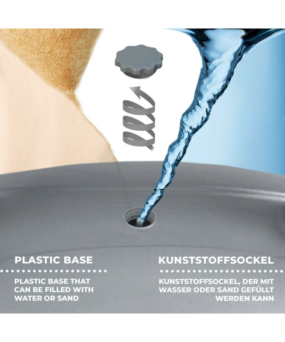 - Base en plastique pouvant être remplie avec de l'eau ou du sable