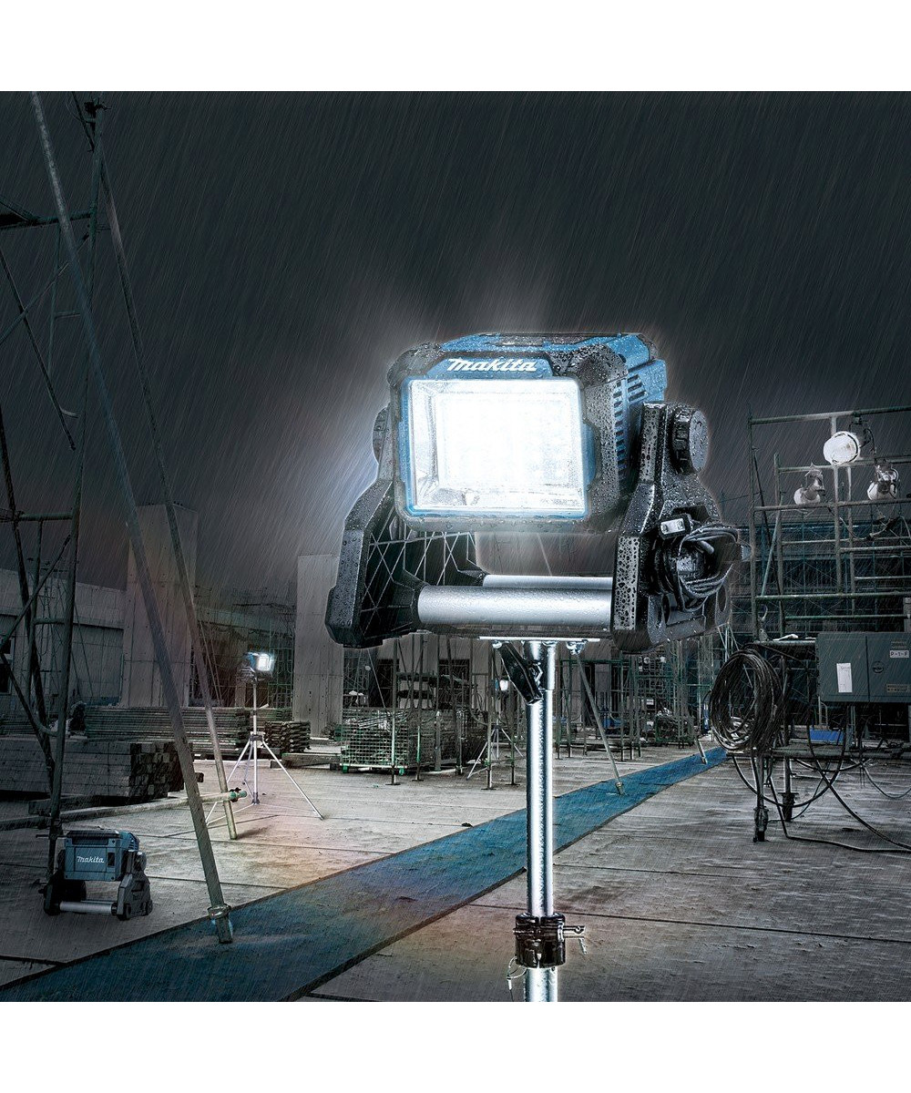 La lampe dispose de 3 modes de luminosité : Faible (750 Lumen). Durée de combustion : 6,5 heures (BL1830) ou 11 heures (BL1850) heures (BL1850 ) - Il est possible d'incliner facilement la lampe de chantier de 240 degrés (-30 degrés à 210 degrés).