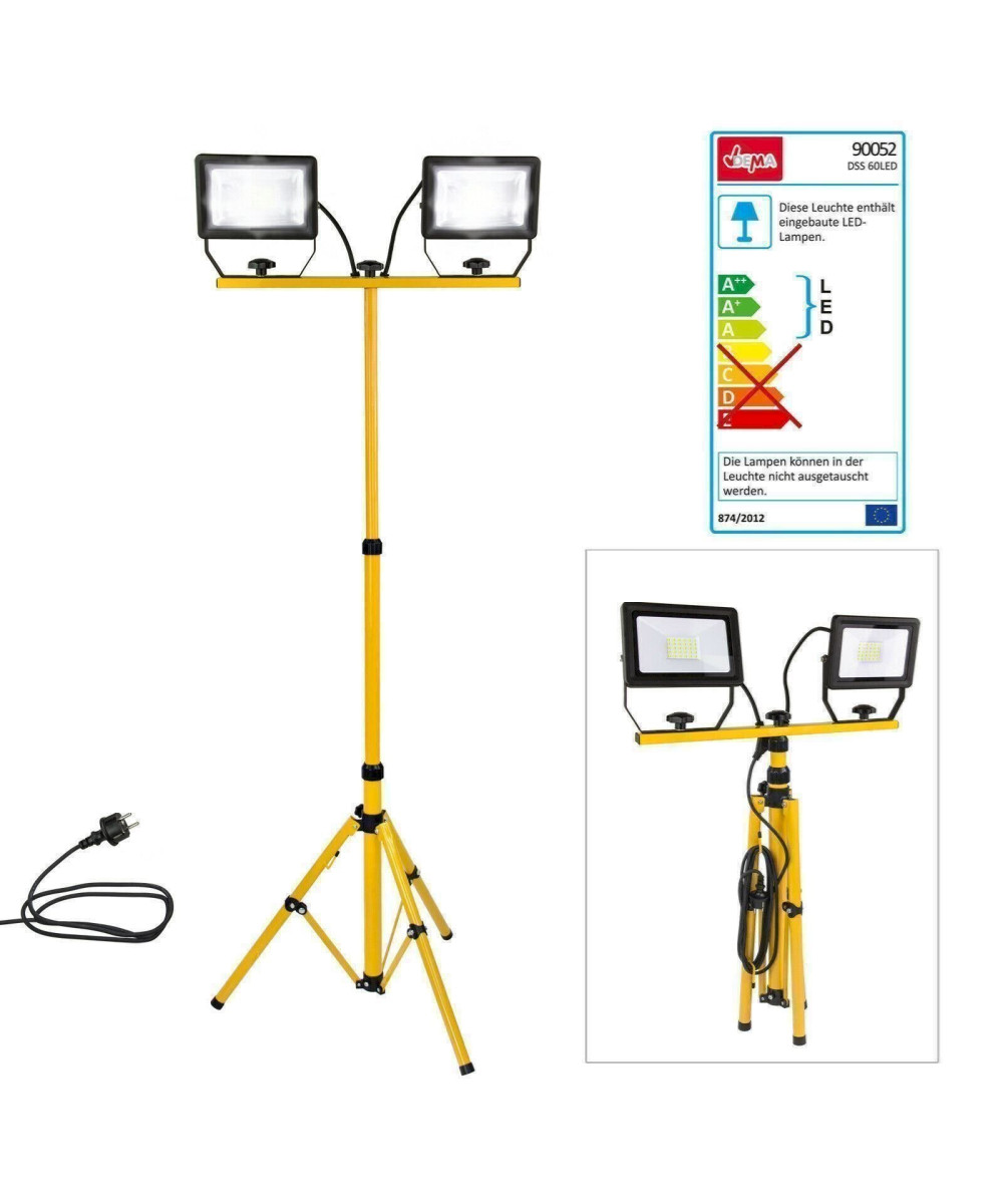 DEMA 90052 LED Strahler Baustrahler Slim flach 2 x 30 W Watt A+ 2150 lm kaltweiß mit Stativ