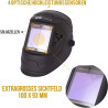 Avec le champ de vision extra large de 100 x 93 mm, le masque de soudage IPOTOOLS ultra léger et robuste vous offre une vision claire de votre pièce à travailler, votre champ de vision est considérablement agrandi, tout en profitant d'une protection durable contre les étincelles, les éclaboussures et la chaleur. La fonction de protection pour vos yeux est particulièrement élevée, car le casque de soudage automatique protège parfaitement les rayons infrarouges et UV. Le niveau de protection reste le même dans tous les réglages, au plus haut niveau. - 4 capteurs de qualité supérieure (mains libres).