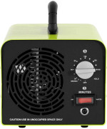 Ce générateur d'ozone produit 15 000 mg d’ozone par heure pour l'air et 600 mg/h pour l'eau, ce qui lui permet de faire disparaitre les odeurs indésirables de façon rapide et efficace. Il met à disposition deux modes. Le premier (« Hold ») est un mode de fonctionnement en continu. Lorsqu'on l'active, le ventilateur et les plaques à ozone marchent sans arrêt et le voyant de contrôle est allumé. Le second mode est limité dans le temps. Pour l'activer, il suffit de régler la minuterie sur une durée 0 à 180 min. Une fois le temps écoulé, le générateur d’ozone se désactivera. Et si vous voulez stériliser de l'eau, alors vous n'avez qu'à brancher l'appareil à une arrivée d'eau et à sélectionner la fonction appropriée en actionnant l'interrupteur à bascule correspondant.