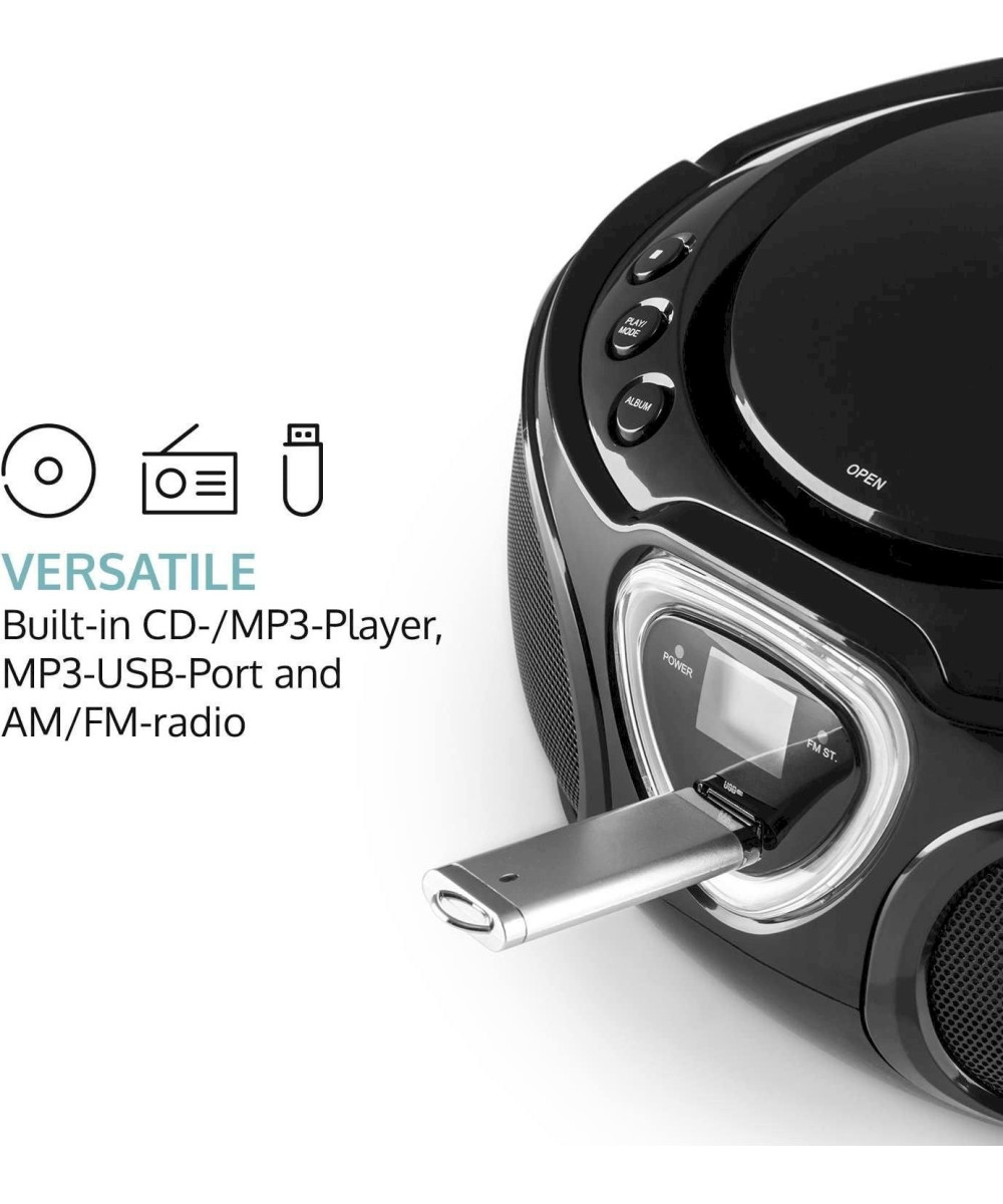 - Toujours avec vous : Boombox CD portable avec radio intégrée