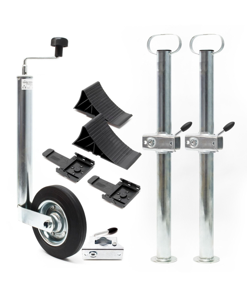 WilTec Kit Béquille de remorque 10 pcs. Roue Jockey Borne Cales de roue 150kg