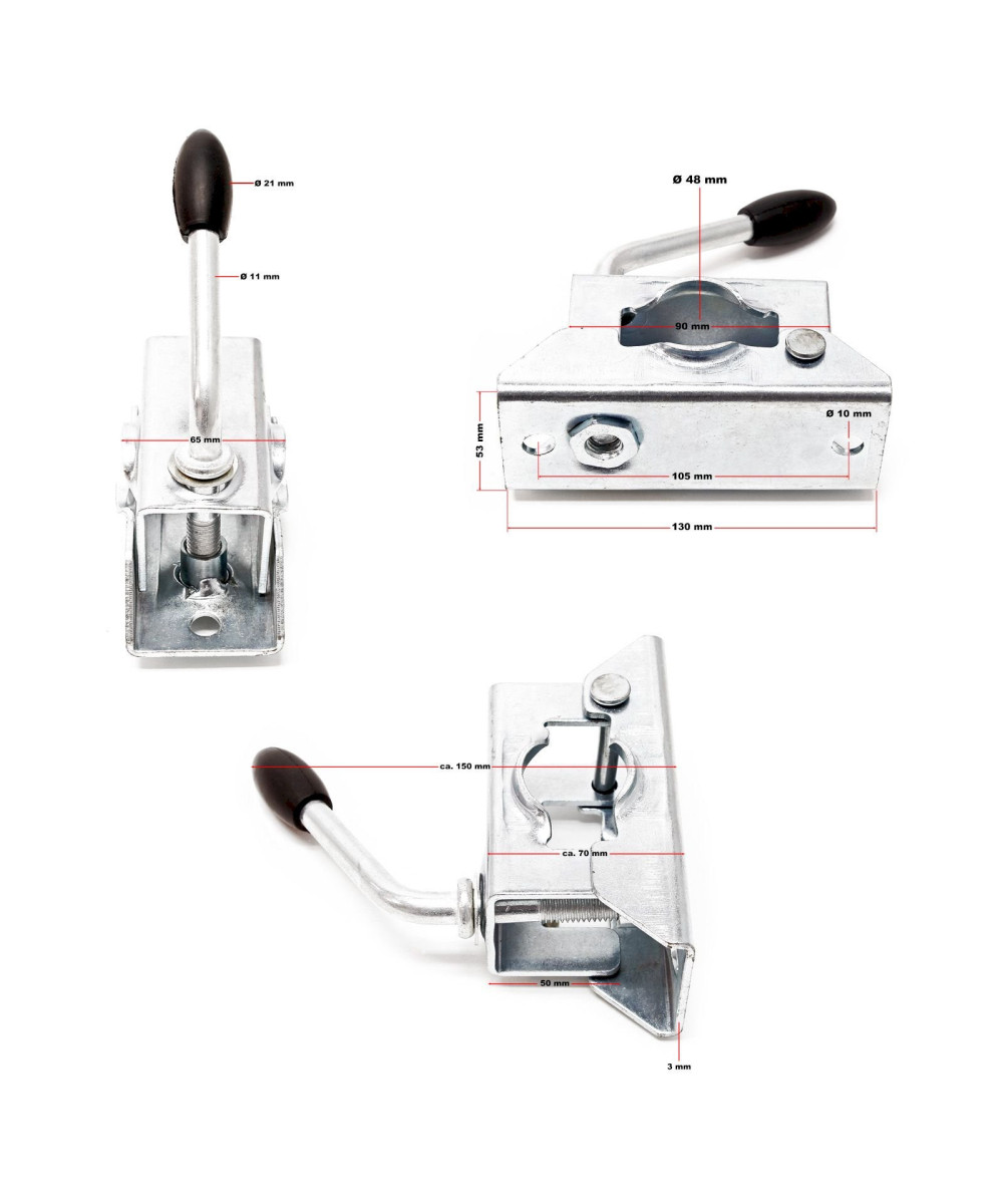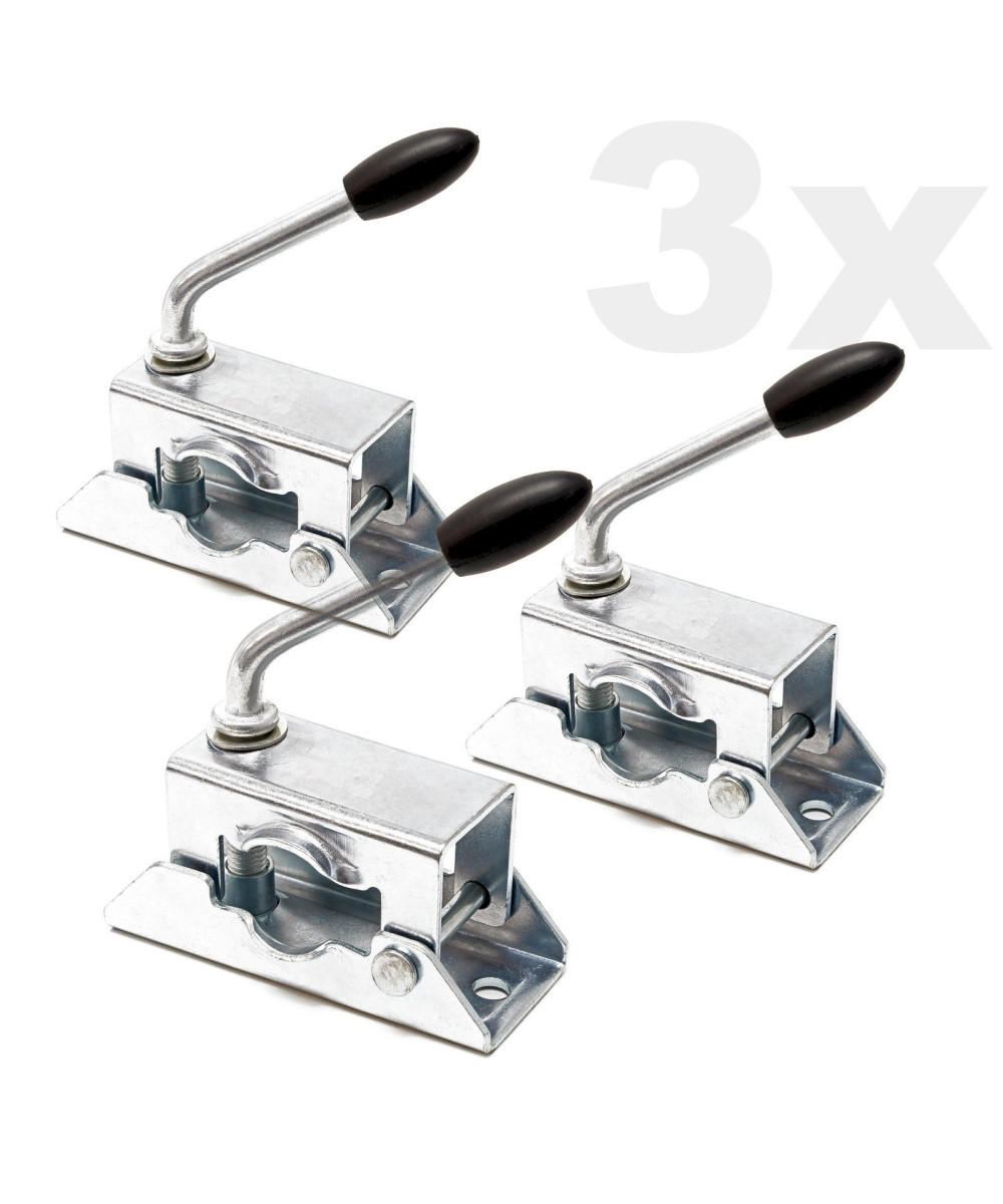 Une béquille de remorque est un dispositif spécialement conçu pour stabiliser la remorque de vos véhicules lors du chargement ou déchargement de celle-ci. Nous vous offrons un set se composant d’une roue Jockey, deux cales de roue avec les pinces correspondantes, trois bornes de serrage ainsi que deux supports de stationnement.