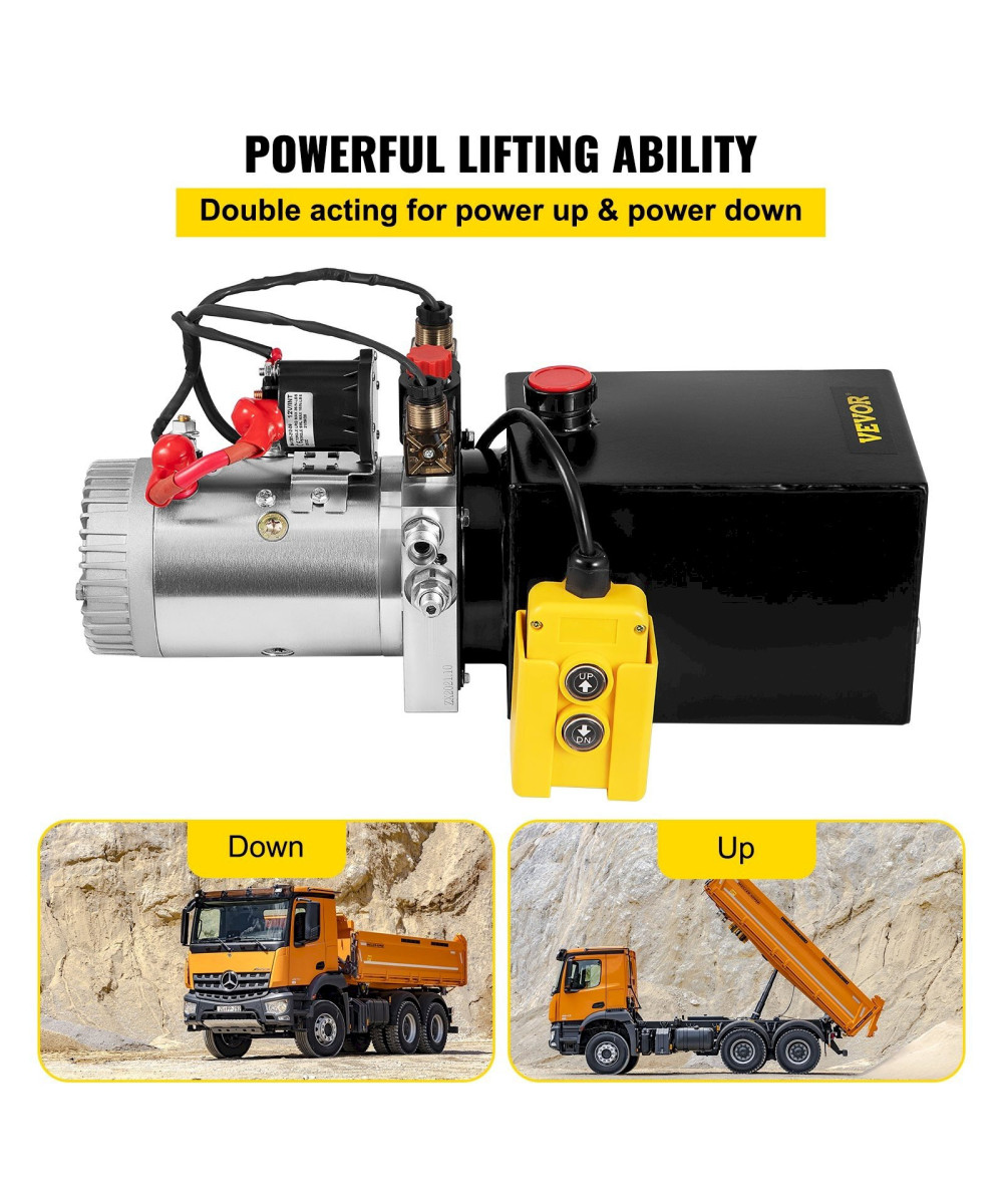 Cette pompe hydraulique est une unité de puissance à double effet pour le levage et la descente électrique. Elle possède un réservoir métallique robuste de 8 L et est conçue avec un moteur 12 V CC qui peut fournir une forte puissance aux systèmes hydrauliques tels que les remorques à benne basculante, les chariots élévateurs, les plates-formes élévatrices, etc.