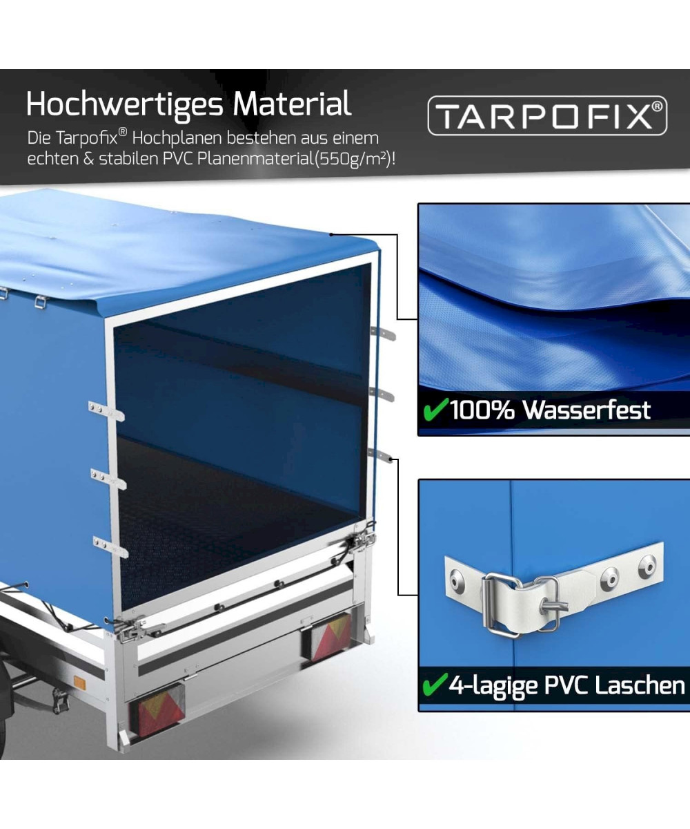 Les remorques Tarpofix sont équipées d'attaches en PVC 4 couches de haute qualité et robustes, qui sont beaucoup plus durables et solides que les attaches en plastique bon marché.