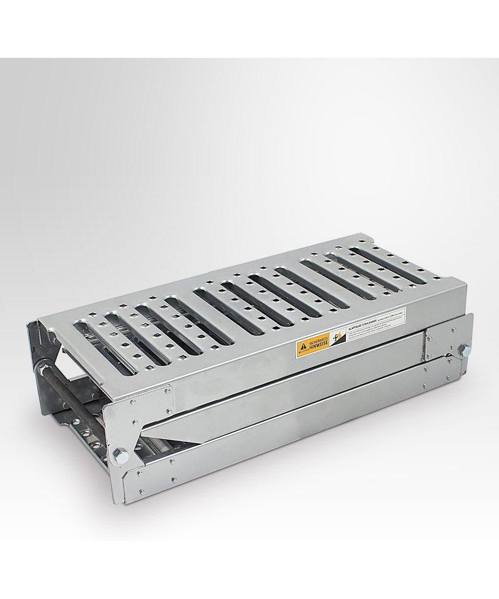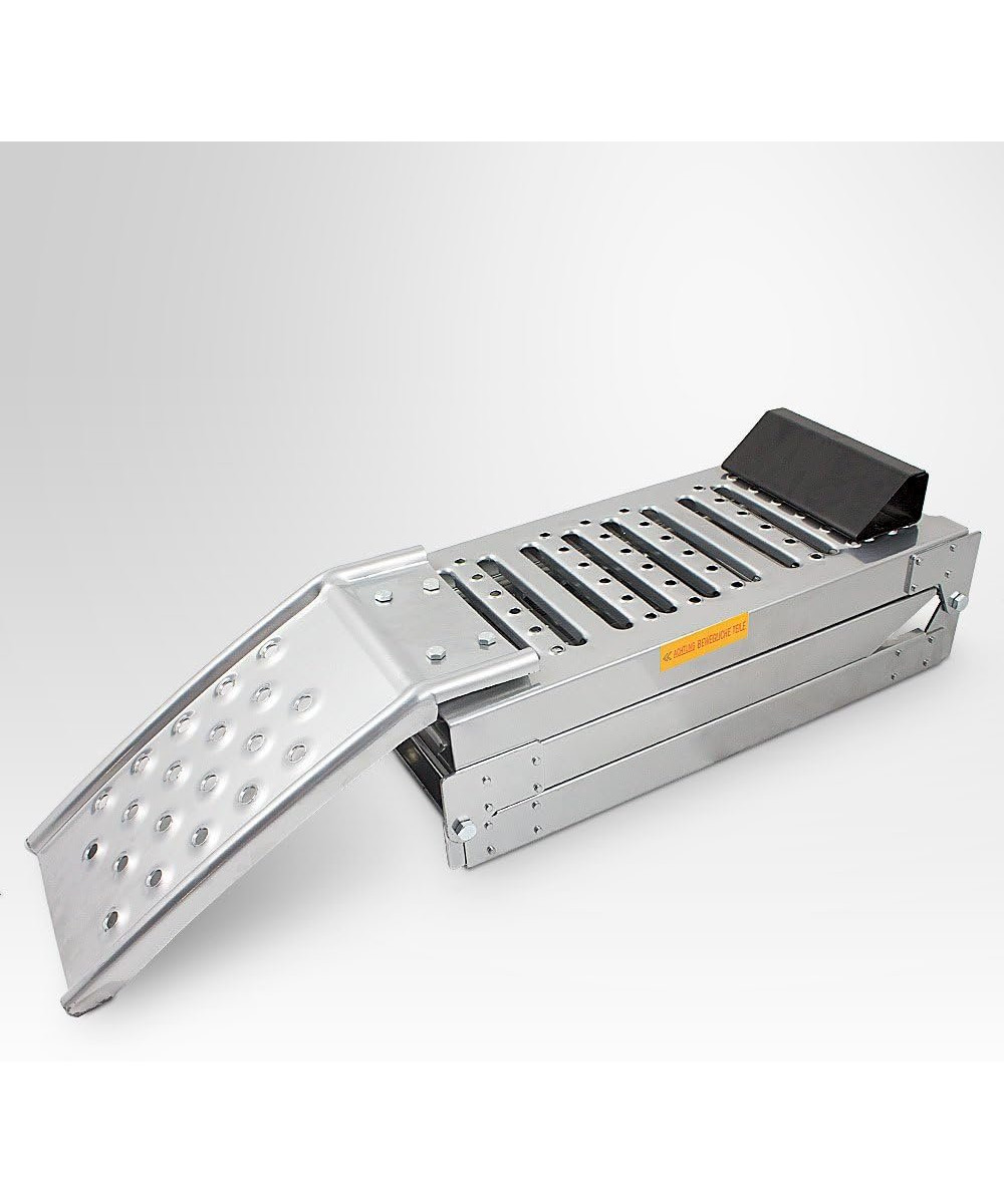 Im zusammengeklappten Zustand ist die Rampe für Wartungen und Instandhaltungen an Fahrzeugen bestens geeignet. 2 Stopper verhindern das Überrollen.