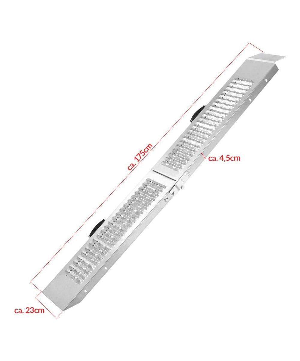La surface anti-dérapante et perforée maintient votre véhicule stable lorsque vous le chargez et déchargez. Avec une capacité de charge max. de 200 kg par rampe, elle peut également être utilisée pour les véhicules lourds.