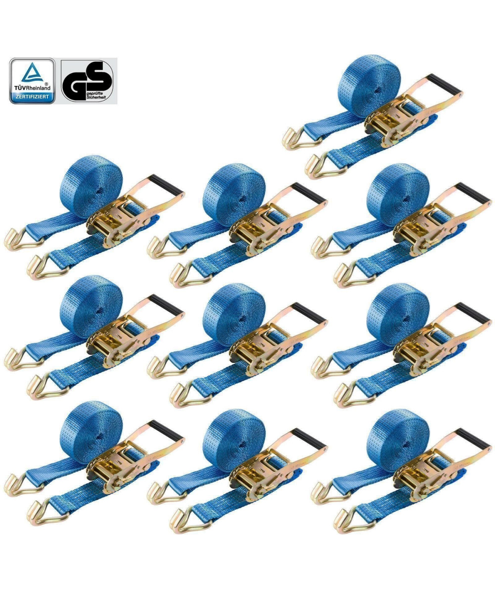 Arebos 10 x Sangle d'Arrimage 6m x 50mm 5000 daN en deux parts