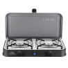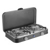 Réchaud à gaz Cook Deluxe 2 de ces 2 de brûleurs à gaz est idéal pour le camping ou caravaning. Chaque brûleur a une allumage piézoélectrique automatique sans sécurité d'allumage. Idéal pour toutes les activités de plein air. Le four/barbecue offre une possibilité polyvalente de cuisson/cuisson anti-adhésif avec une plaque de barbecue réversible avec un plat et un côté gril (fournie). Permet une cuisson griller ou rôtir sur l'un et une de l'eau ou de pâtes sur l'autre côté. La face plate est idéale pour cuire darnes de poisson ou les crêpes, sur le côté gril vous pouvez super griller la viande, le poulet ou de légumes. Caractéristiques : - Puissance : 2,7 kW Consommation de gaz max : 195 g/h Couleur : Gris brûleurs : 2 brûleurs allumage : - Raccordement : 50 mbar Poids : 3,3 kg DIMENSIONS (l x H x P) : 56 x 10 x 31 cm Type : Réchaud à gaz