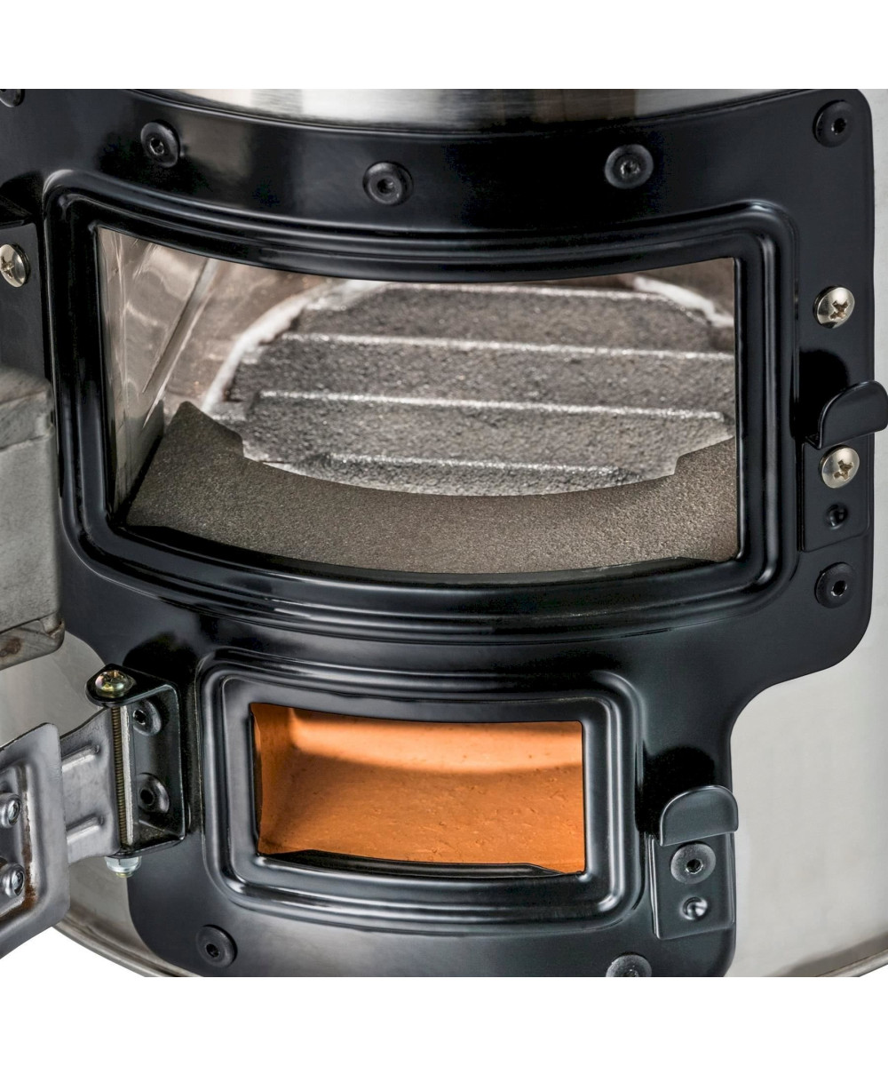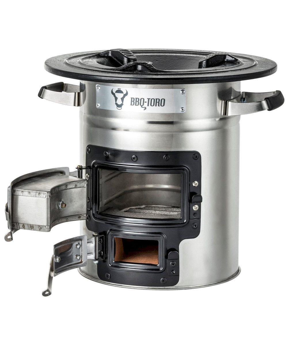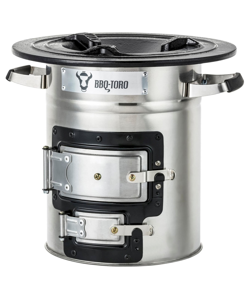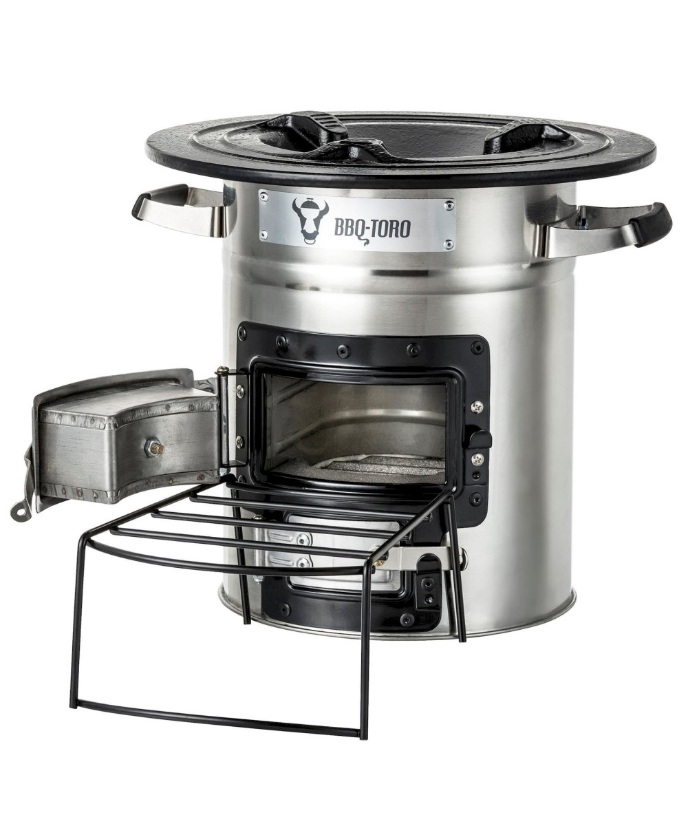 Le four à fusée dispose de deux ouvertures avec portes, pour allumer la fusée d'une part et d'autre part, vous pouvez réguler l'arrivée d'air. La livraison comprend un cadre en bois de chauffage avec lequel vous pouvez pousser de plus grandes pièces de bois par le bas. Le support de casserole pratique à 3 points offre à votre four Dutch ou votre poêle en fonte un maintien optimal. En outre, le four à fusée est équipé de poignées confortables en acier inoxydable avec revêtement en caoutchouc. Les poignées peuvent être touchées même au four.