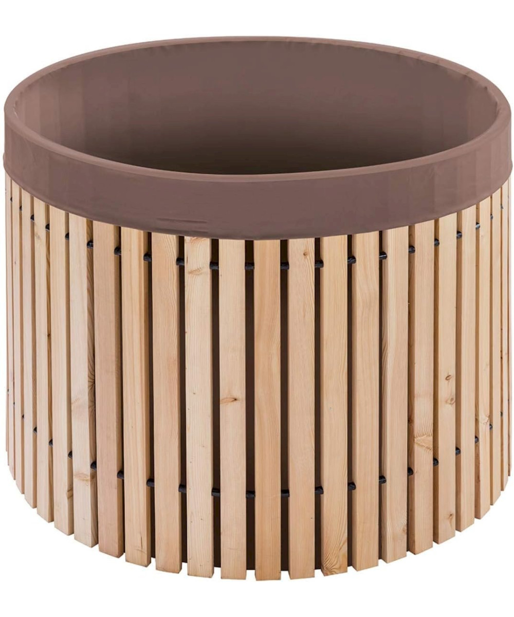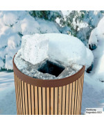 La paroi du tonneau est désormais constituée de lattes de mélèze rabotées, larges de 4,7 cm et épaisses de 1,8 cm, résistantes aux intempéries et reliées entre elles par deux câbles métalliques invisibles.