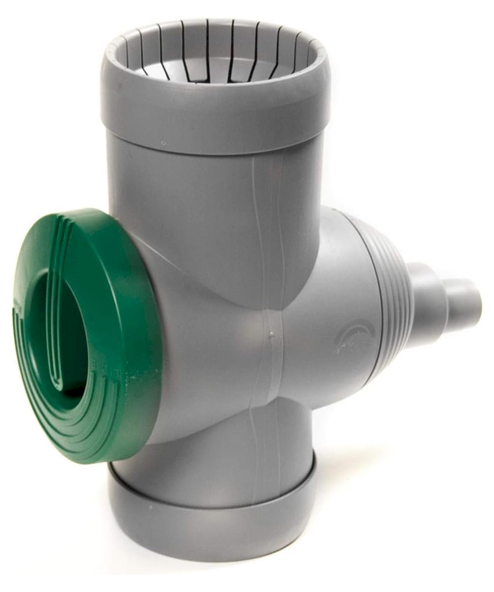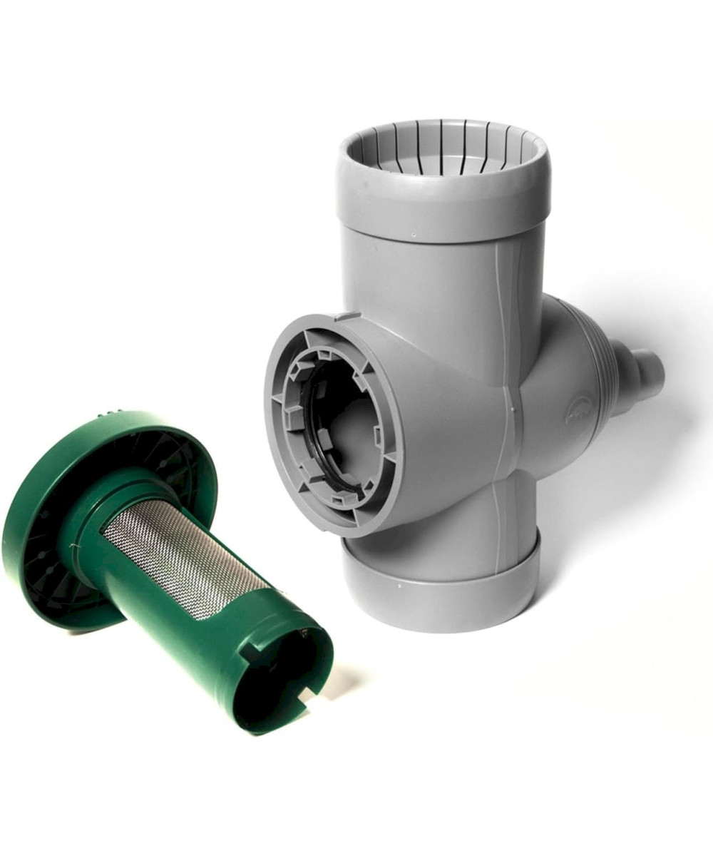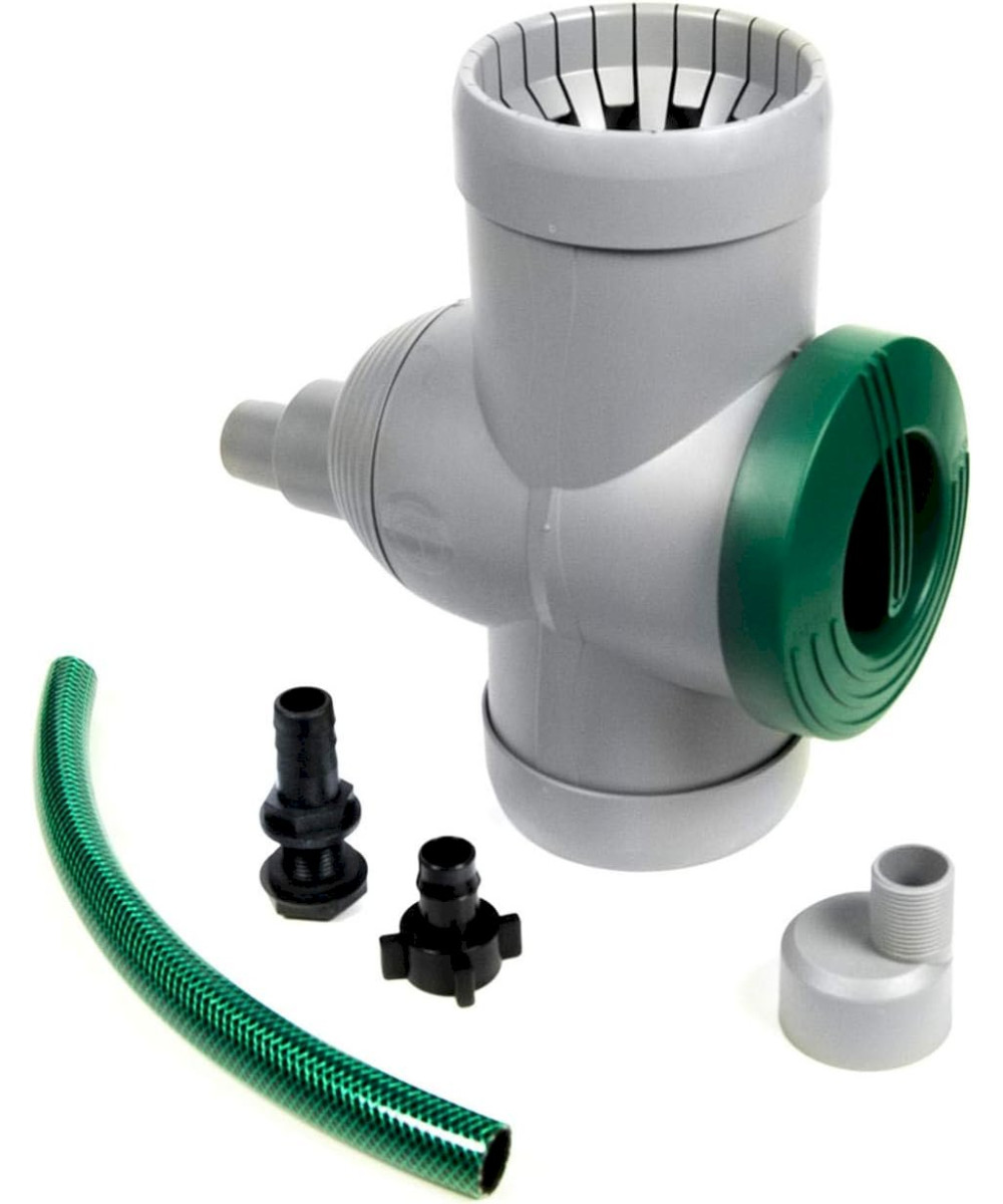 Modèle haut de gamme en plastique épais et robuste. Possibilité de raccordement pour tuyaux HT DN70 et DN50 ainsi que pour tuyaux flexibles 1¼" et ¾".
