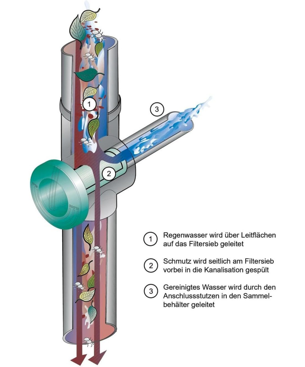 Le filtre automatique de collecte d'eau de pluie se monte facilement dans le tuyau de descente. Le filtre en acier inoxydable intégré, facile à nettoyer, avec une maille de 0,7 x 1,7 mm, purifie l'eau avant qu'elle n'atteigne le réservoir d'eau de pluie.
