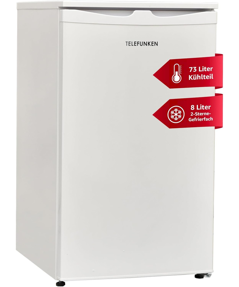 Mit einem großzügigen Nutzinhalt von insgesamt 81 Litern (73 L Kühlen / 8 L Gefrieren) bietet die Kühl-Gefrierkombination von Telefunken ausreichend Platz für einen einen Single- oder Zwei-Personen-Haushalt. Der Telefunken Kühlschrank verfügt zudem über eine praktische Abtauautomatik im Kühlraum. - Perfekte Organisation