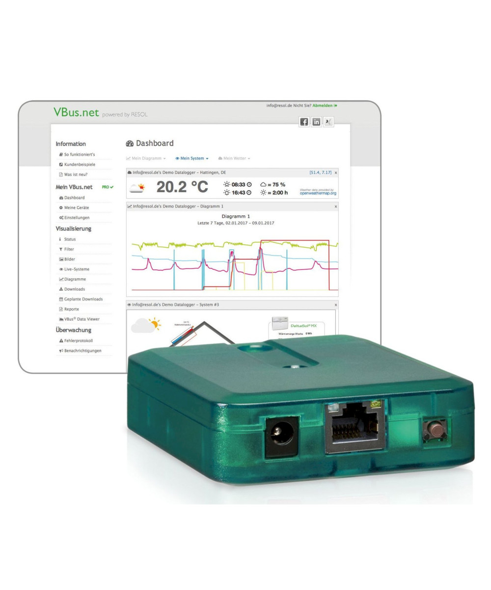 - Compatible avec tous les régulateurs RESOL dotés du VBus®