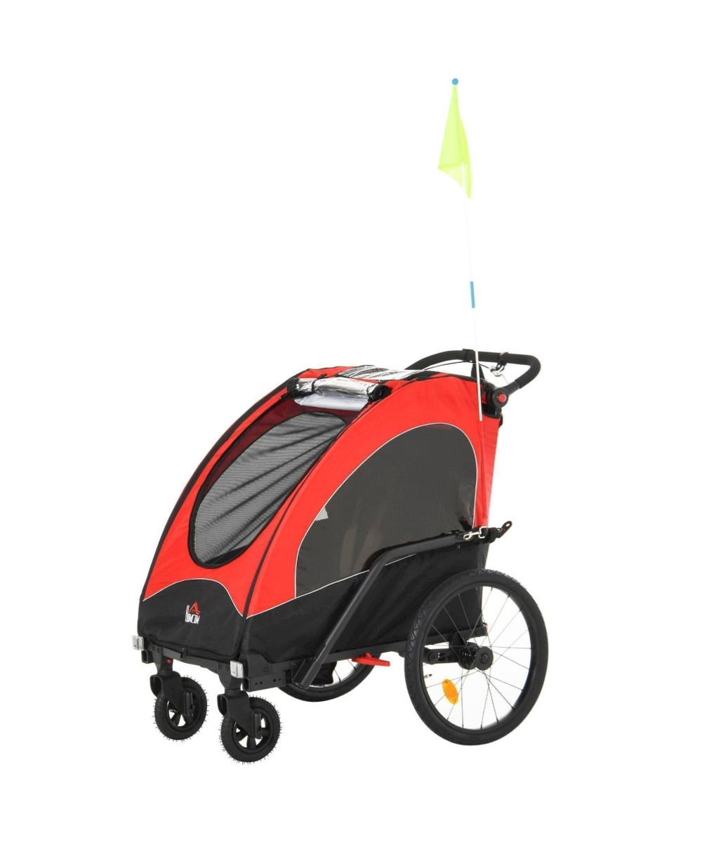 HOMCOM Remorque de vélo 3 en 1 en aluminium pour enfant avec drapeau rouge et noir