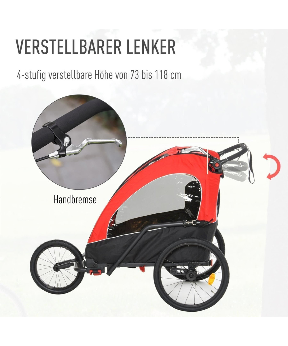 - Sûr et protégé : le tissu Oxford avec cadre en aluminium rend la remorque super stable et durable. 2 sièges larges rembourrés avec ceinture de sécurité à 5 points et frein à main sur le guidon réglable garantissent la sécurité de votre enfant.
