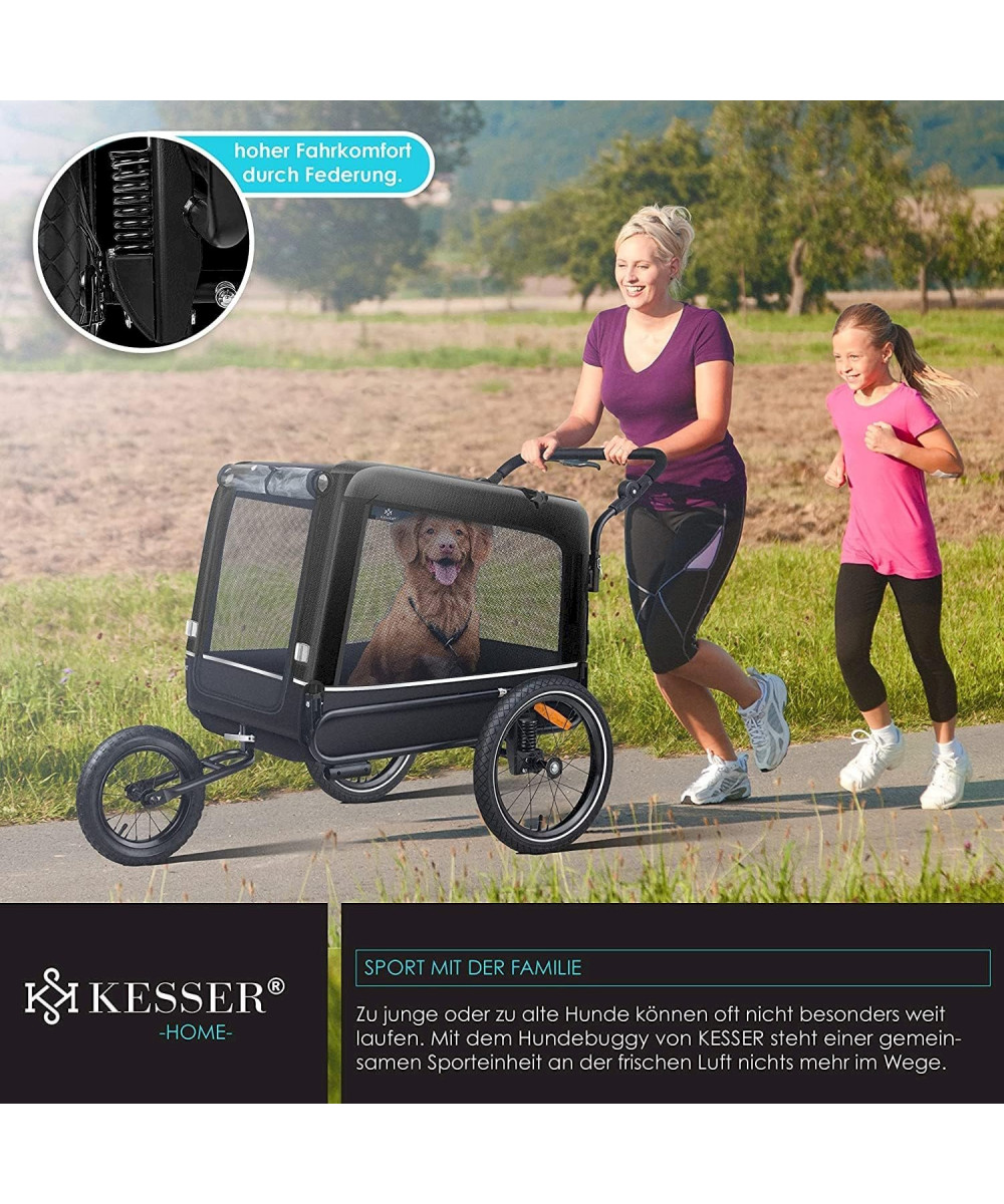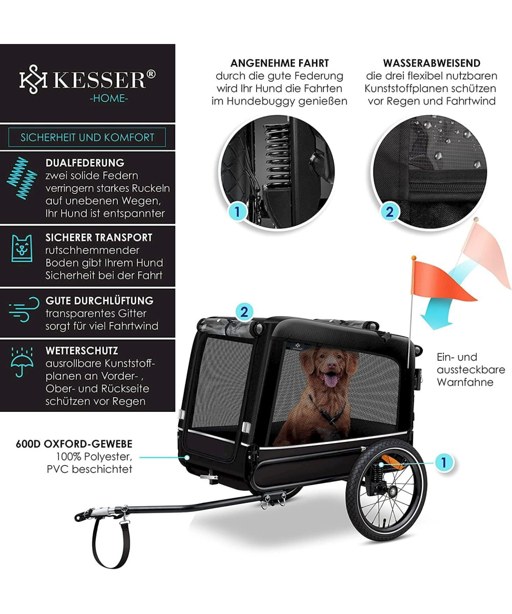 - Multifonction : peut être utilisé comme porte-chien, poussette ou remorque de vélo.