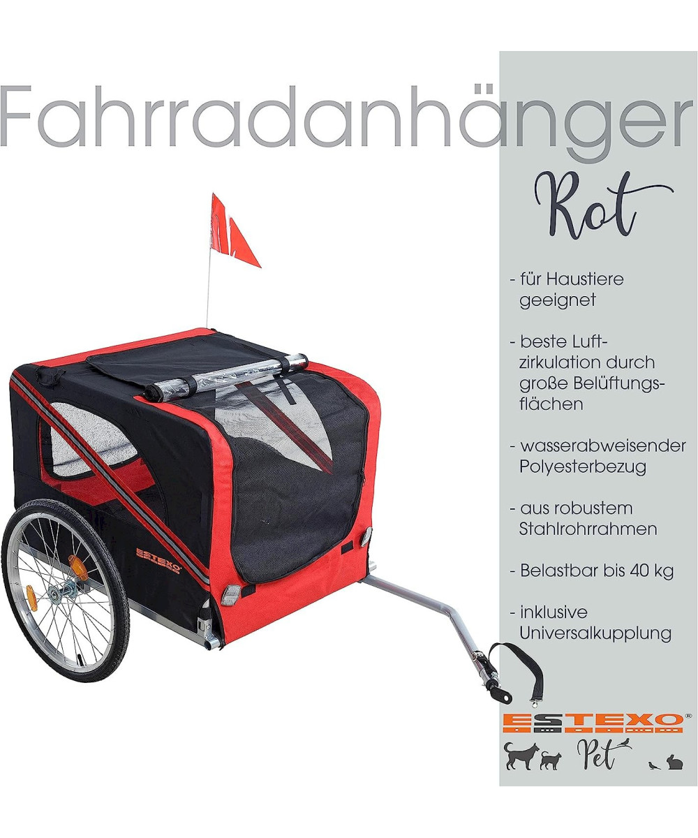 ESTEXO Remorque Vélo pour Animaux Chiens Rouge