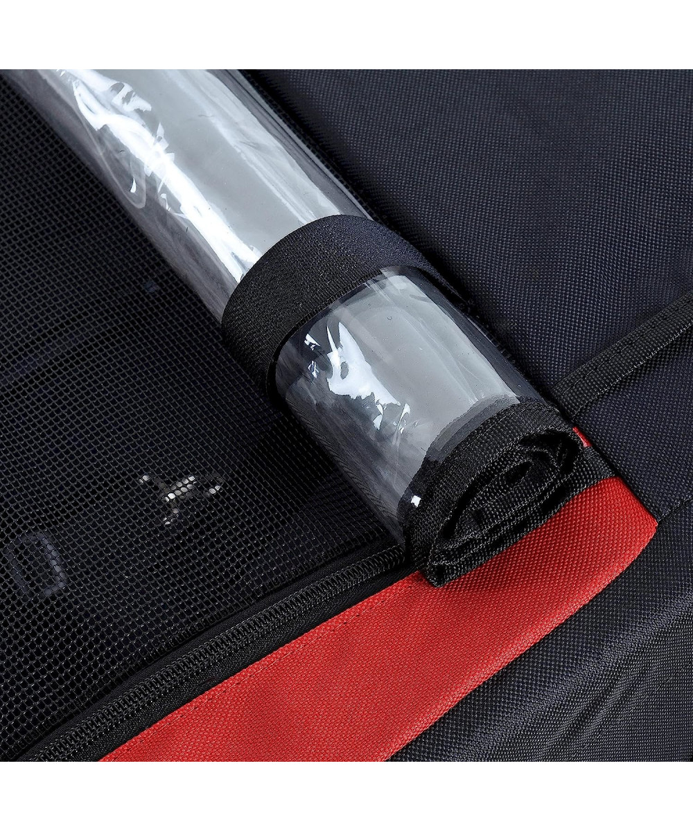 Notre remorque à vélo pour animaux de compagnie est pliable et peut donc être rangée pour gagner de la place. Il est fixé à l'aide d'un attelage de vélo universel pour l'essieu arrière, qui est inclus dans la livraison. La remorque à vélo a une grande ouverture à l'avant et à l'arrière, que vous pouvez fermer avec un filet et une protection supplémentaire contre le vent et la pluie (feuille) avec une fermeture éclair. La remorque est équipée de réflecteurs (avant, arrière et latéraux) et d'un fanion pour une meilleure visibilité et sécurité.