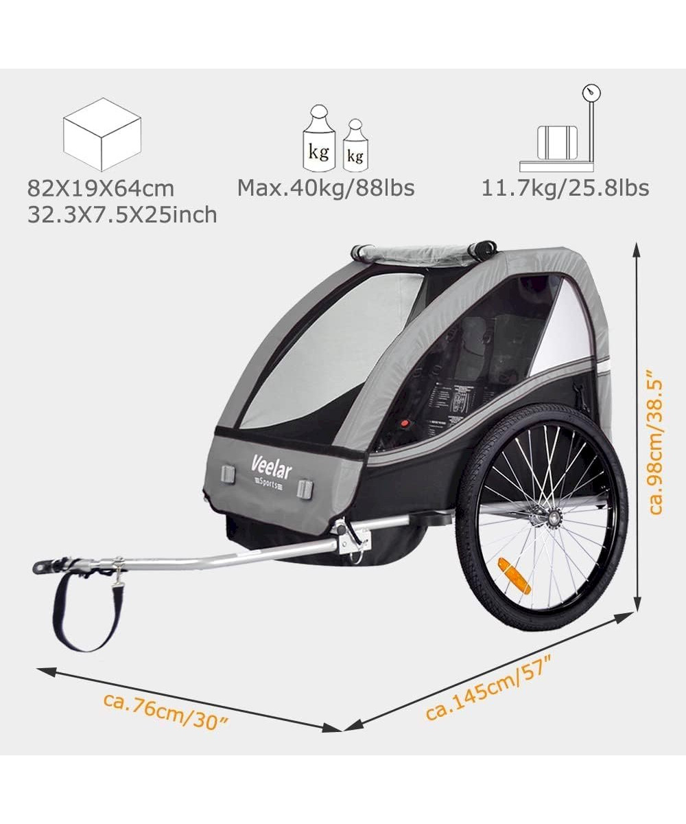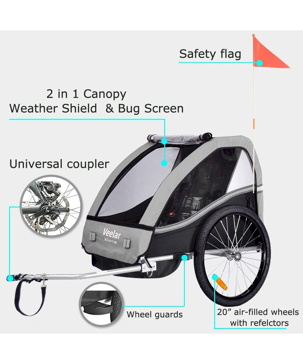 TIGGO VS Remorque de vélo pour enfant GRIS