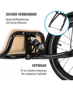 - support de goupille de serrage fourni, adapté à tous les vélos avec serrage rapide sur la roue arrière, les axes pleins nécessitent un adaptateur disponible dans le commerce spécialisé