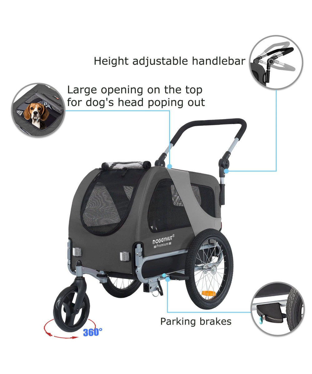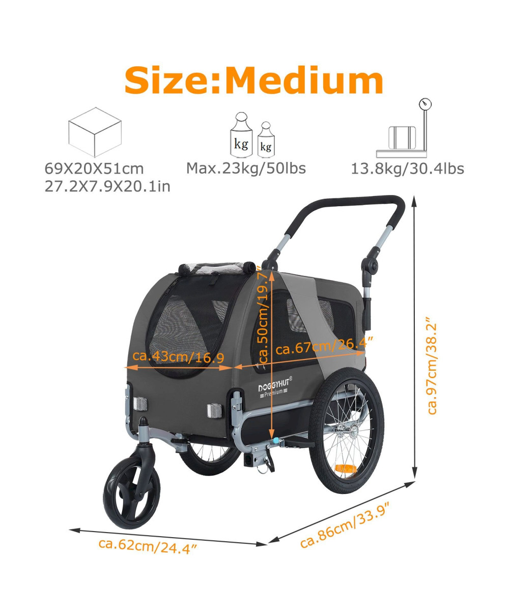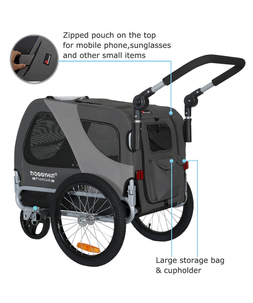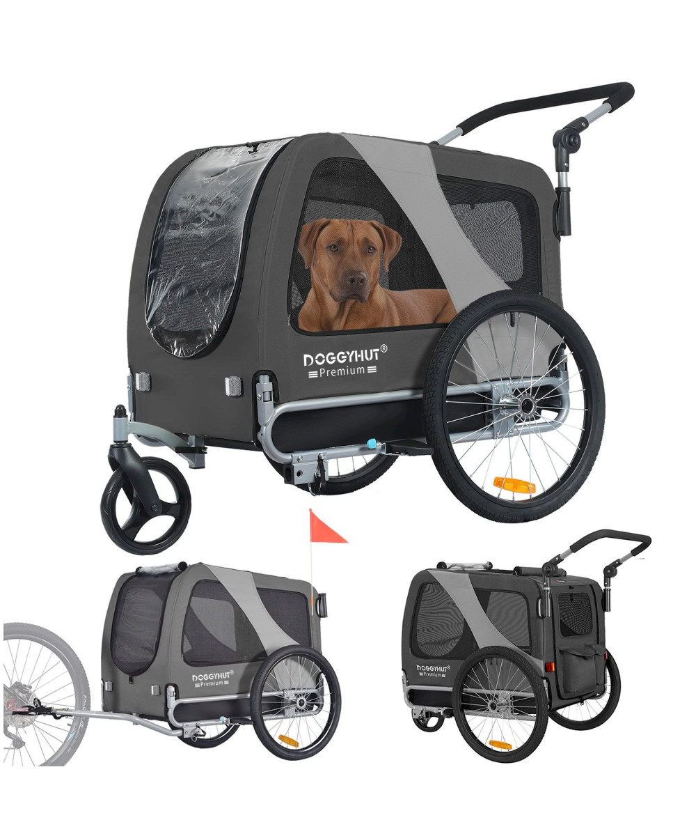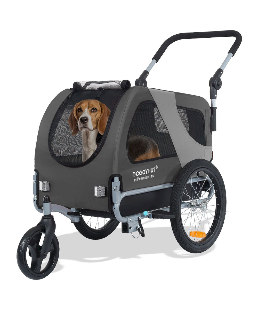 DOGGYHUT Premium MEDIUM Grau Hundefahrradanhänger & Jogger 2in1 Fahrradanhänger